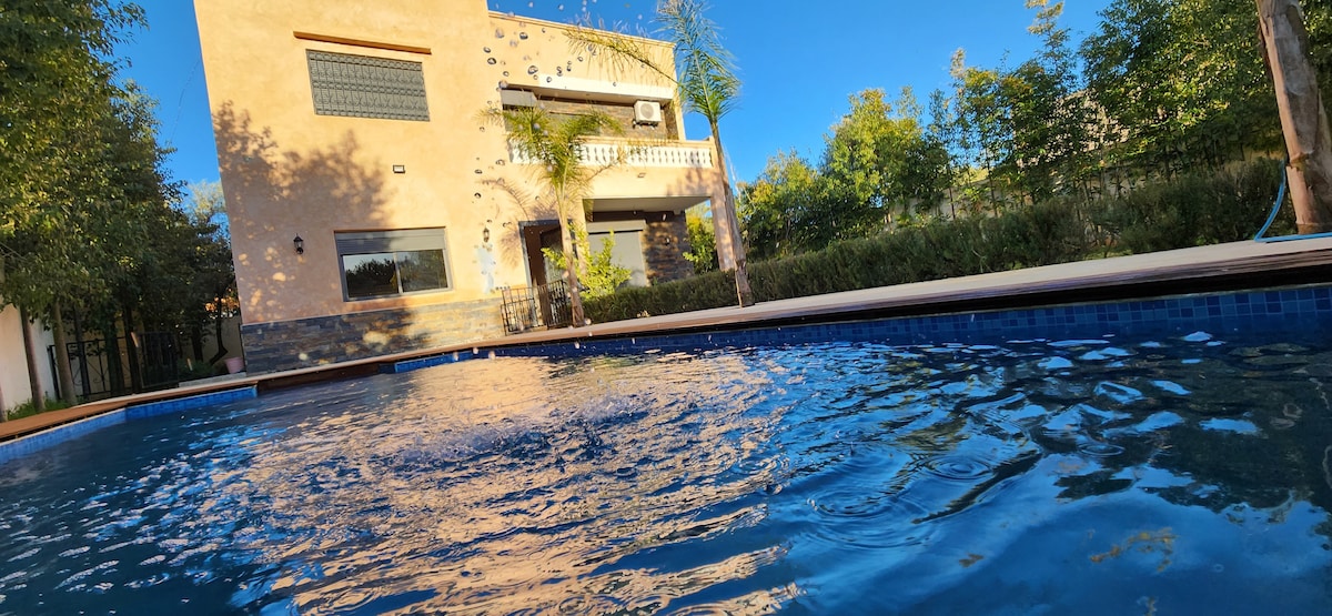 Villa luxe 4 suites, piscine chauffée, vue Atlas.