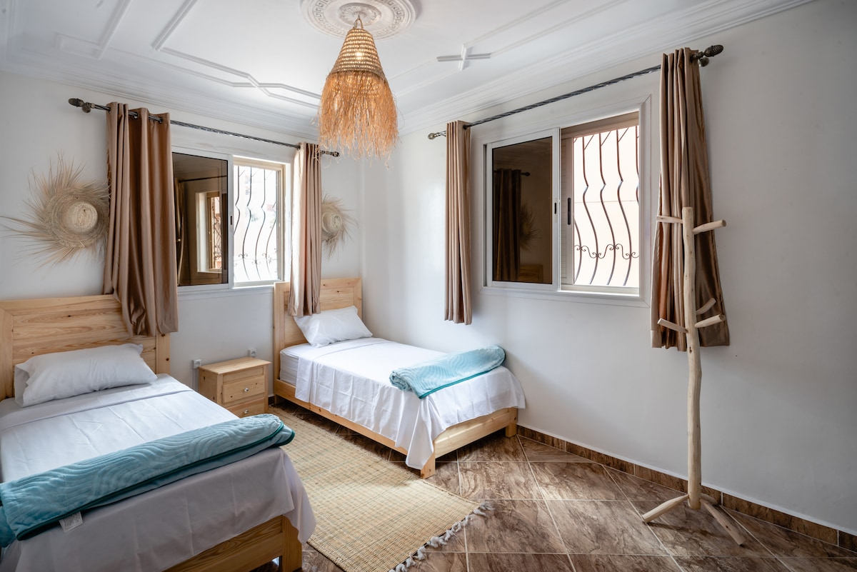 Relax and chill in this cosy home, just steps away from the beach. Welcome to your home away from home! This stylish and inviting 2-bedroom flat is perfect for your next getaway, situated in a secure residence just a 5-minute walk from the beautiful Agadir beach. Nestled in the heart of the bustling tourist area, you’ll find yourself surrounded by local attractions, shops, and delicious dining options.