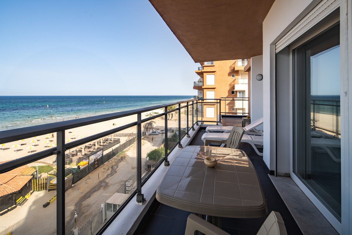 L'appartement offre une superbe vue sur le port et sur la mer ainsi que la ville de Sousse et Monastir. A proximité des commerces et des restaurants.