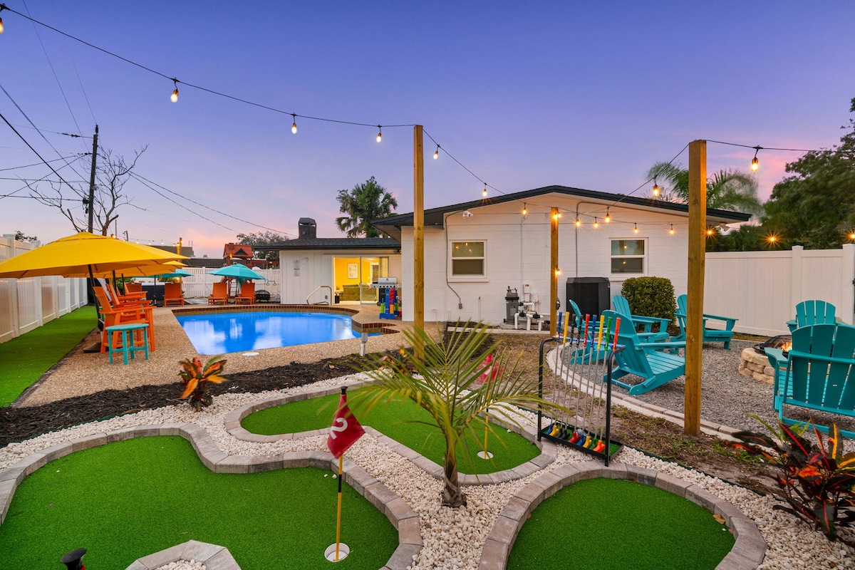 Bienvenue à la Paradise Fun House, l'endroit idéal pour votre fête de rêve ! Notre oasis Airbnb regorge de divertissements et d'activités pour un séjour inoubliable. Faites un tour en vélo ou en kayak gratuit, pêchez avec un équipement haut de gamme, défiez vos amis au mini-golf, détendez-vous dans le jacuzzi ou profitez de notre collection de jeux. Les clubs de golf et l'équipement de plage sont prêts à rouler. Notre disposition spacieuse est parfaite pour faire la fête toute la nuit. Réservez maintenant pour une expérience ultime de plaisir ou de détente ! Bateau/garde d'animaux/nettoyage sont disponibles.