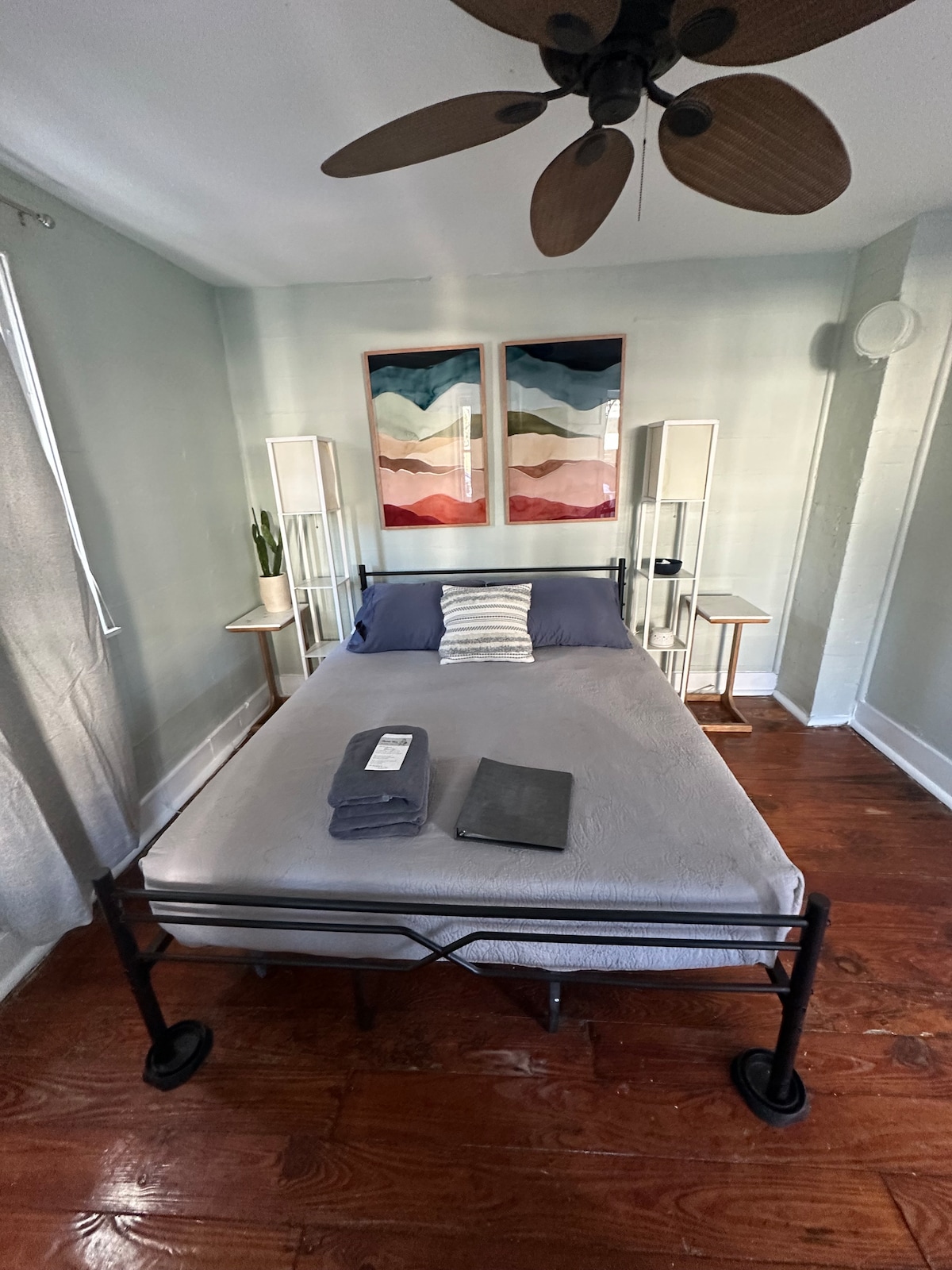 Il s'agit d'une chambre privée avec un lit queen size et une salle de bain complète. Cette chambre est accessible depuis le porche. Pour accéder à la cuisine commune, vous descendrez le porche de deux portes pour accéder à la cuisine entièrement approvisionnée qui est partagée avec deux autres chambres privées à cet étage. Nous avons le petit déjeuner en libre-service (flocons d'avoine, thé, café), et le WIFI est inclus ! Vous devez avoir plus de 18 ans pour réserver ; arrivée autonome à tout moment après 14 HEURES.