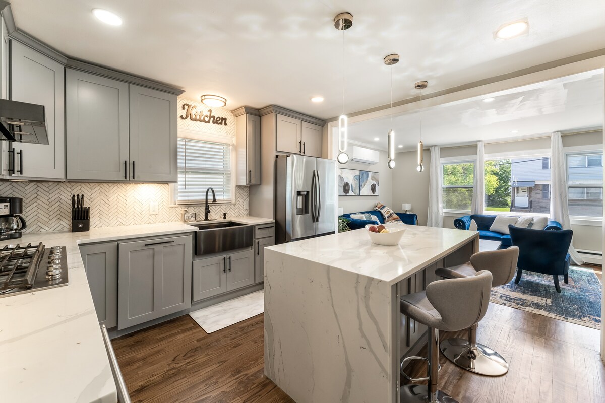 Profitez de tout le charme que Maplewood a à offrir dans notre bungalow situé à côté du parc. Notre maison de 3 chambres se trouve à quelques pas des lieux favoris locaux, y compris les glaciers et les cafés. La porte de la cour arrière s'ouvre directement sur un magnifique parc, avec des courts de tennis, une aire de jeux et un espace vert ouvert. Détendez-vous près du foyer et du barbecue en été ou blottissez-vous près de la cheminée pendant les mois les plus froids. Proche des trains avec service direct NYC, du MetLife Stadium et des Meadowlands pour les concerts et les matchs de la Coupe du monde de la FIFA.