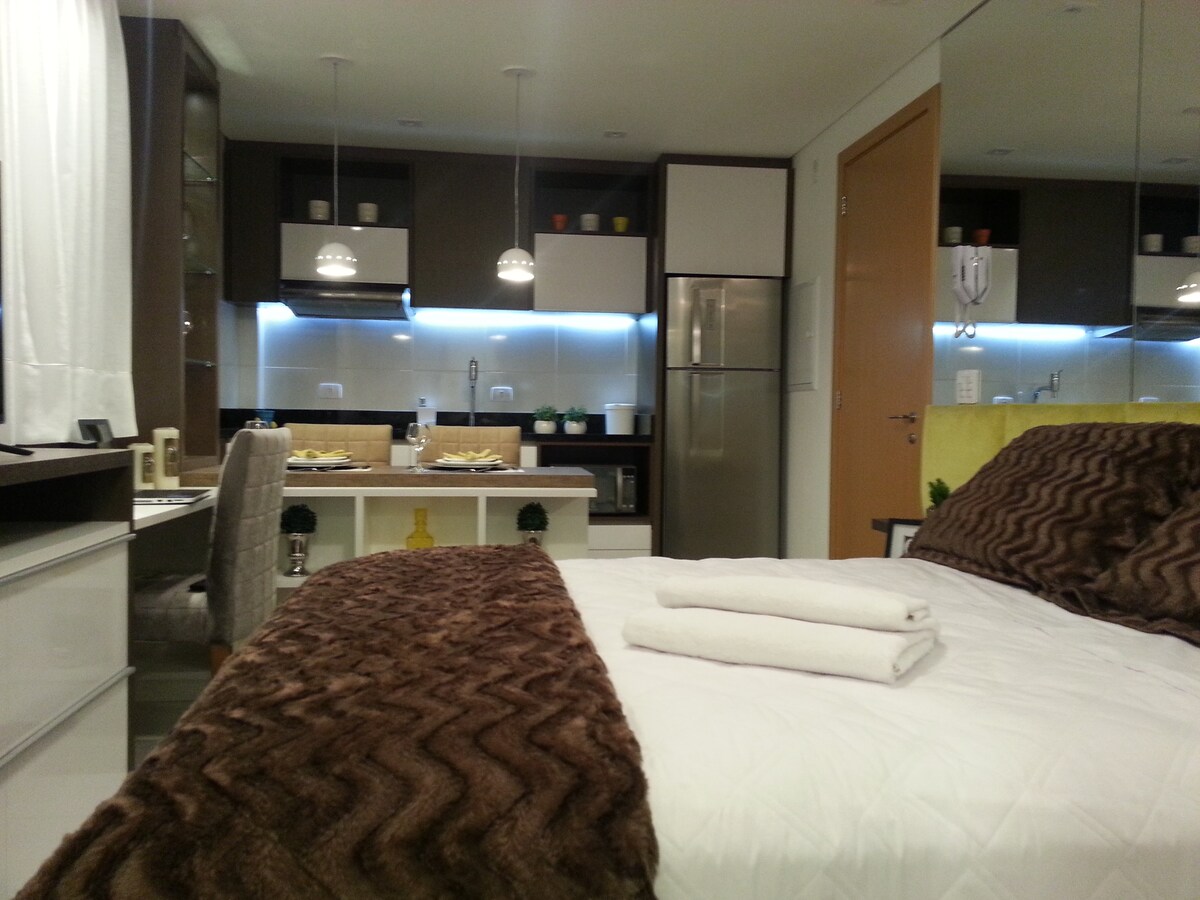 Appartement récemment rénové, tout en porcelaine, finement décoré, cuisine américaine avec réfrigérateur, armoires, Cooktop, divers ustensiles à disposition. Chambre avec bureau, climatisation split, accès WI-FI, télévision par câble, sèche-cheveux, armoires, etc... La copropriété dispose d'un espace de loisirs avec salle de sport, sauna et piscine. Appartement situé dans le quartier central le plus noble de Londrina. C'est l'occasion de séjourner dans un appartement haut de gamme dans une excellente copropriété.