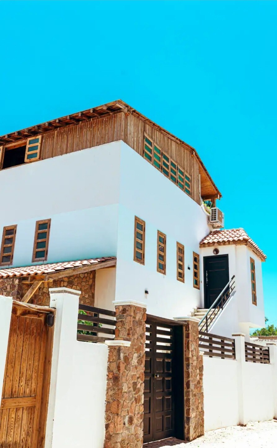 Un chalet de style bohème à Dahab, avec vue sur la mer dans le jardin d'Eel et à quelques pas de la côte de Coral. Il dispose de deux chambres confortables, d'un espace de réception ouvert et élégant, et d'un joli toit avec une vue imprenable sur la mer. L'intérieur est conçu avec une ambiance chaleureuse et bohème, reflétant une atmosphère calme et reposante, avec un décor naturel et des tons terreux. C'est l'endroit idéal pour se détendre et profiter de la beauté de la mer et de la nature
