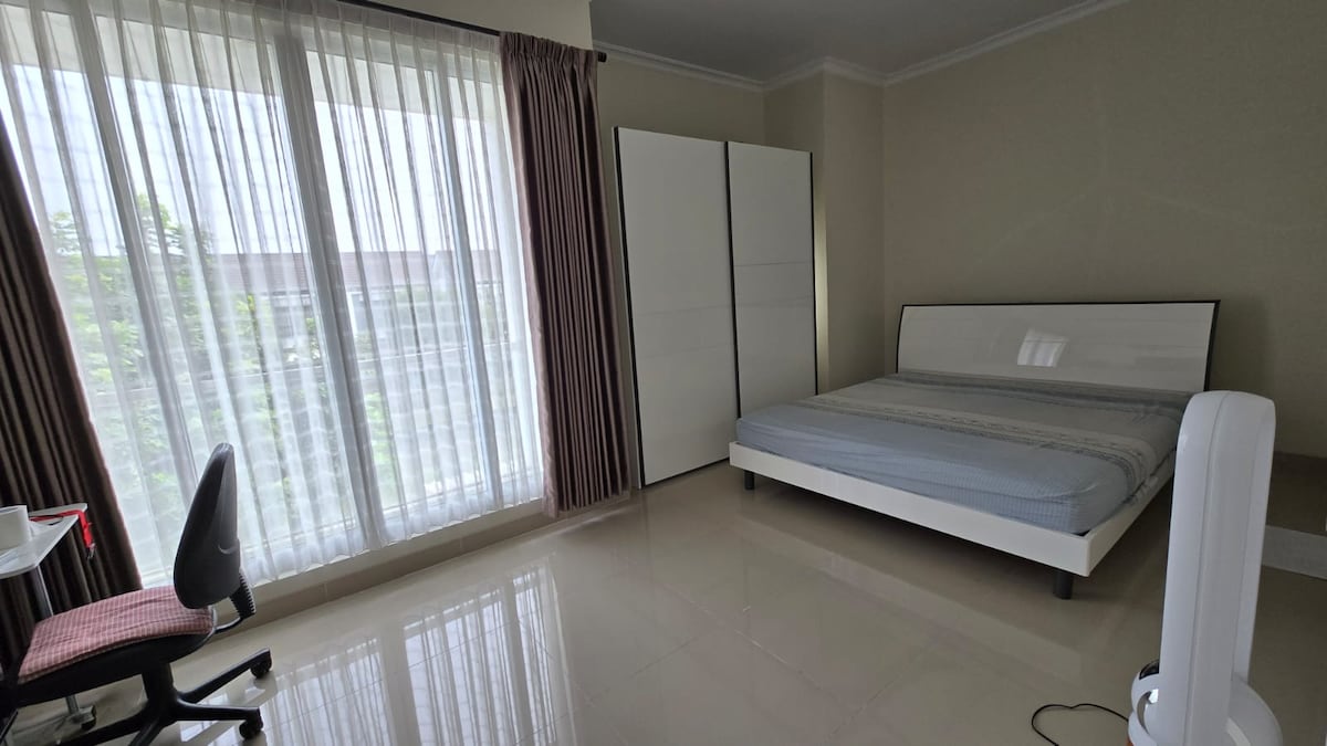 Faites l'expérience d'un autre chez-vous loin de chez vous dans notre appartement de 2 chambres avec services. Entouré d'un environnement paisible et de paysages naturels. Situé dans un quartier pratique et recherché qui offre divers lieux d'intérêt dans les environs. • À 5 minutes en voiture de QBIG BSD • À 5 minutes en voiture de l'Indonesia Convention Exhibition (ICE) • À 5 minutes en voiture d'Eastvara BSD • À 2 minutes en voiture de Branchsto BSD (attractions pour enfants) • À 2 minutes en voiture du supermarché Grandlucky.