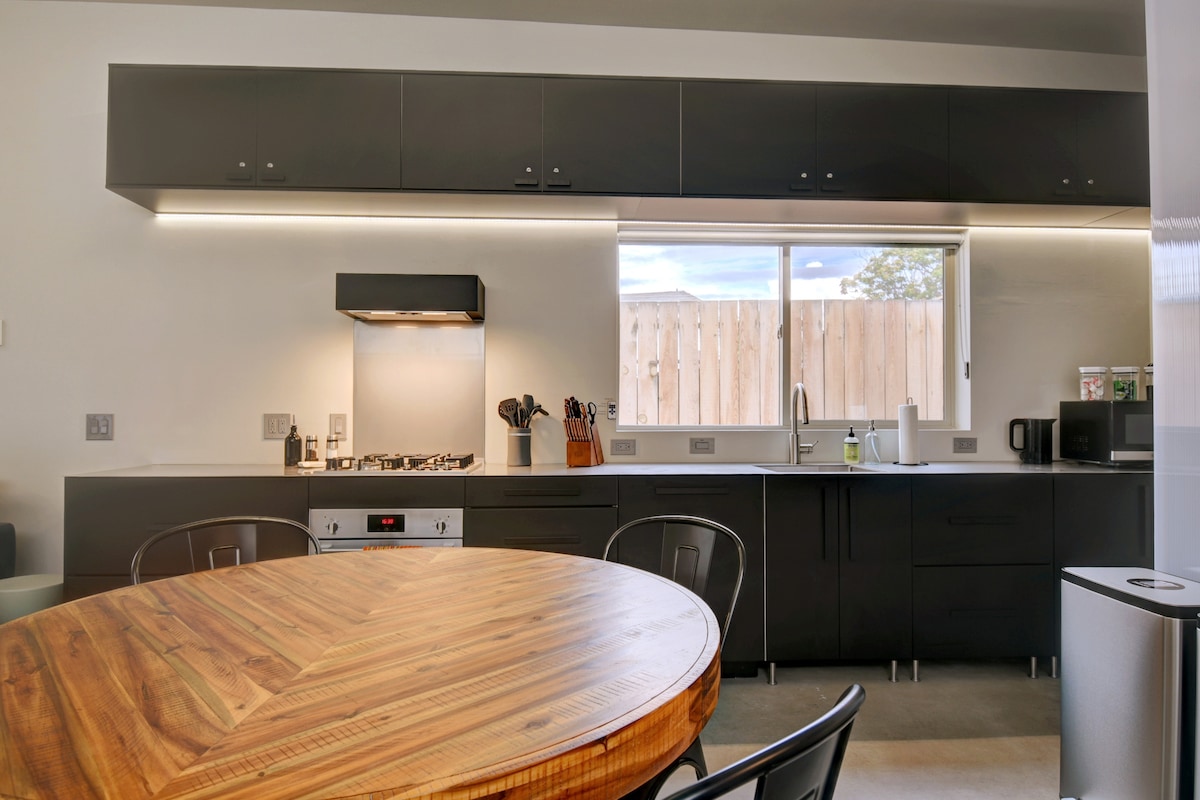 Découvrez le mélange parfait de sophistication et de fonctionnalité dans cette maison de ville moderne. Avec des lignes épurées et un design minimaliste, chaque détail est soigneusement conçu pour une expérience sans faille. Ce havre de paix urbain offre une escapade tranquille idéalement située entre la vieille ville historique et le centre-ville d'Albuquerque. Profitez d'œuvres d'art locales sélectionnées avec soin dans un décor éclectique. Idéale pour ceux qui cherchent à explorer la ville animée ou à se retirer dans un refuge plus intime. Nous avons tout ce qu'il vous faut !