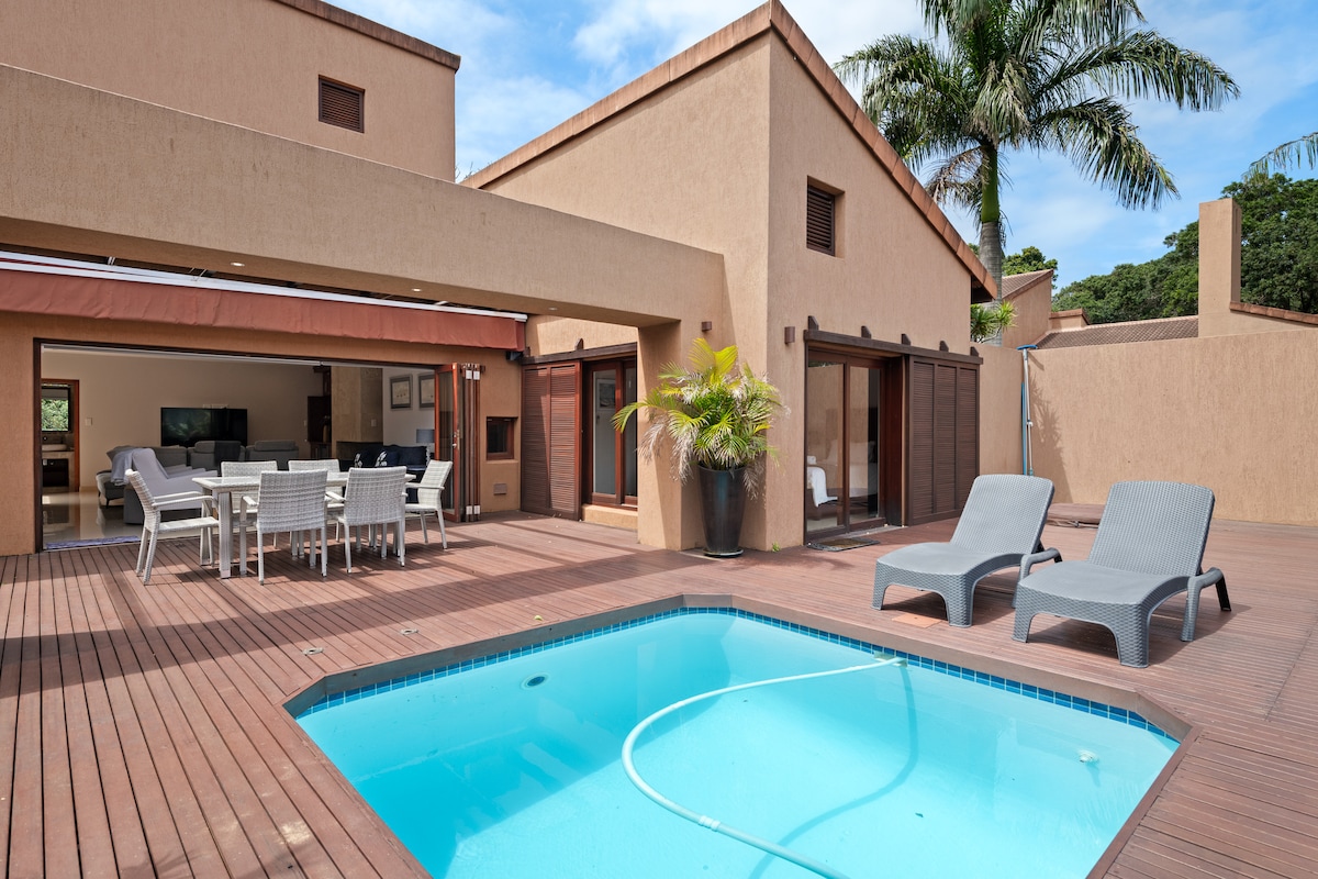 Passez de bons moments en famille dans ce logement élégant. Situé directement sur la plage avec accès direct à la plage et proche des 2 grands centres commerciaux. Le complexe dispose d'une piscine, d'installations braai, de courts de tennis, d'une salle de jeux, de trampolines et d'une salle de sport dans la jungle. Le complexe dispose d'un trou de forage et d'un onduleur, donc pas d'interruptions d'électricité ou d'eau. Entièrement équipé d'un lave-linge, d'un sèche-linge, d'un lave-vaisselle, d'un DStv premium et d'une connexion Wi-Fi.