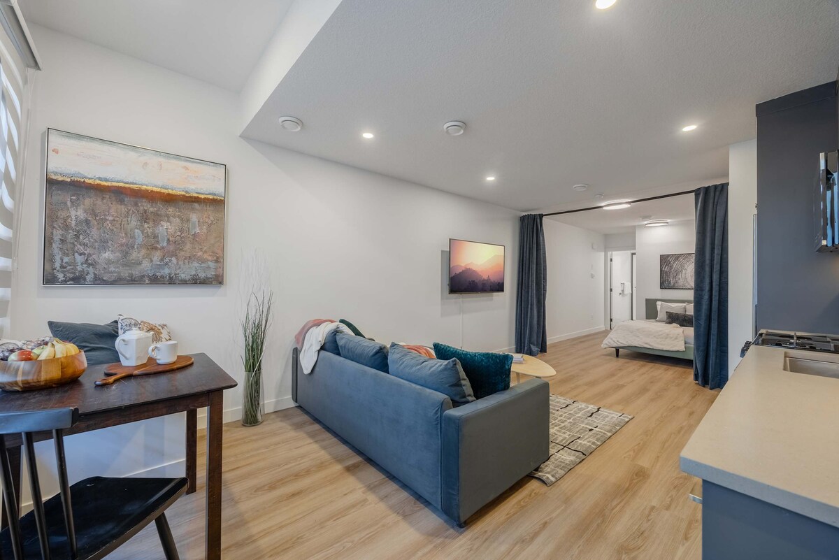 Bienvenue dans mon élégant appartement d'une chambre situé au cœur de Kensington, Calgary ! Le logement dispose d'une décoration moderne, d'un mobilier confortable et de grandes fenêtres qui laissent entrer la lumière naturelle. Profitez d'un parking gratuit et d'un accès à toutes les commodités du bâtiment, y compris un patio sur le toit avec une vue imprenable sur la ville ! Avec son emplacement privilégié à côté de Sunnyside Ctrain, vous êtes à quelques pas des restaurants, boutiques et divertissements branchés. Réservez votre séjour dès aujourd'hui et découvrez le meilleur de la vie en centre-ville !