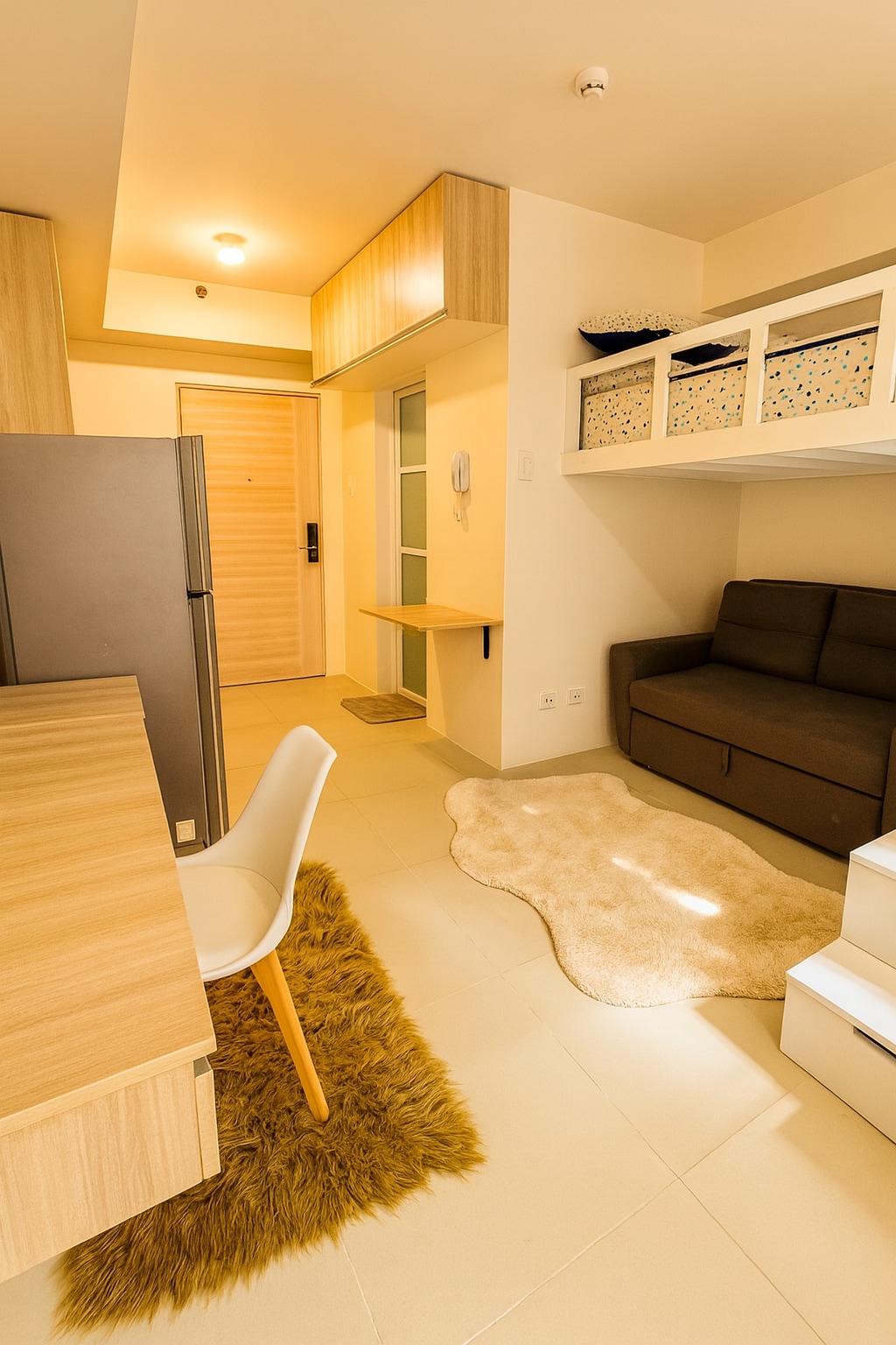 Découvrez le mélange parfait entre confort chaleureux et luxe hôtelier, où votre détente, votre plaisir et votre confort sont nos principales priorités. Initialement conçu comme un appartement de 2 chambres, nous avons transformé ce logement en une suite d'une chambre avec balcon, offrant un salon et un coin repas spacieux. Doté d'appareils électroménagers, d'options de divertissement et de consoles de jeux, cet appartement entièrement meublé à Quezon City est disponible pour des locations quotidiennes, hebdomadaires ou mensuelles, idéal pour vos prochaines vacances.