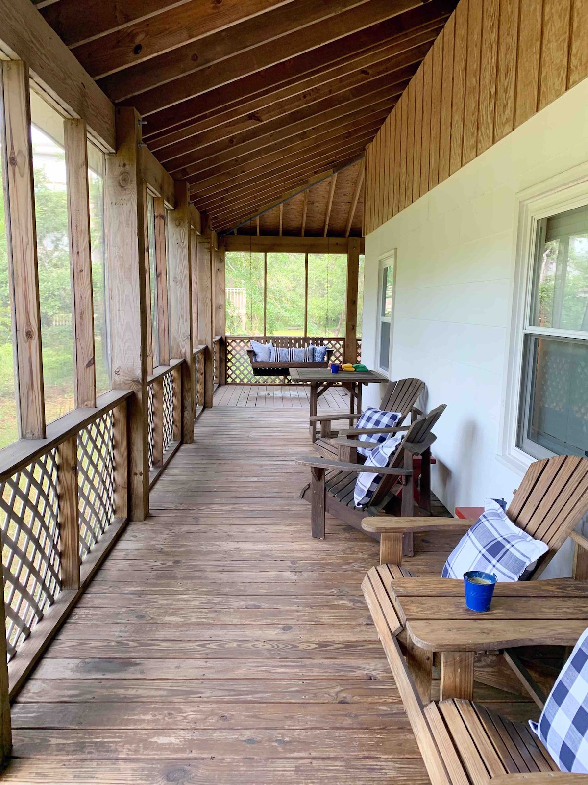 Il s'agit d'un véritable chalet historique et classique {mid-century modern}. Il a été construit en 1956 par Frank Stick. Frank était un artiste et promoteur local et a lancé le mouvement « flat-top » à Southern Shores. Nous avons travaillé dur pour moderniser ce classique et lui redonner vie avec quelques touches amusantes ! Le porche est notre caractéristique préférée. C'est 1 200 pieds carrés de bonheur relaxant et criblé. Les dîners en famille à l'extérieur et les tournois de corn hole sont la façon dont notre famille se détend dans ce charmant chalet !