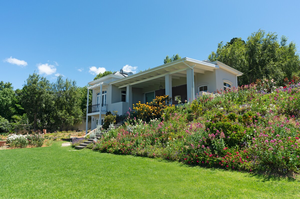 Profitez d'un séjour confortable dans notre gîte confortable et décoré avec goût Batterie de secours à l'eau et à l'énergie solaire Situé dans un cadre calme et rural - accès privé Wifi rapide Peut accueillir confortablement 2 personnes (avec 2 petits enfants ou 1 enfant plus âgé - canapé-lit) salon ouvert avec poêle à bois et cuisine complète Constantia est une banlieue verdoyante du Cap ; nous sommes entourés de magnifiques domaines viticoles historiques, de promenades paisibles dans les vignobles et les montagnes, et de fabuleux restaurants Idéalement situé pour visiter de nombreuses régions du Cap