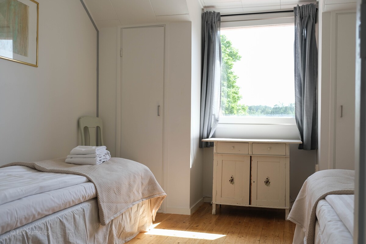 Sauna en bord de mer dans un abri dans la maison principale à 1 km de la plage du ferry de Lillmälö. Emplacement idéal pour les cyclistes de l'île ou d'autres séjours courte durée. Chambre d'environ 9 m2 et salle de bain. Peut accueillir deux personnes. Draps pour la maison, mais leurs propres serviettes. Équipé d'un petit réfrigérateur, d'un micro-ondes, d'une cafetière et d'une bouilloire, de vaisselle. Dans la buanderie, de l'eau chaude dans la casserole. Eau courante sur le mur extérieur. Utilisation du sauna moyennant des frais supplémentaires de 10 €. Toilette extérieure séparée. L'accès aux toilettes et à la plage n'est pas accessible.