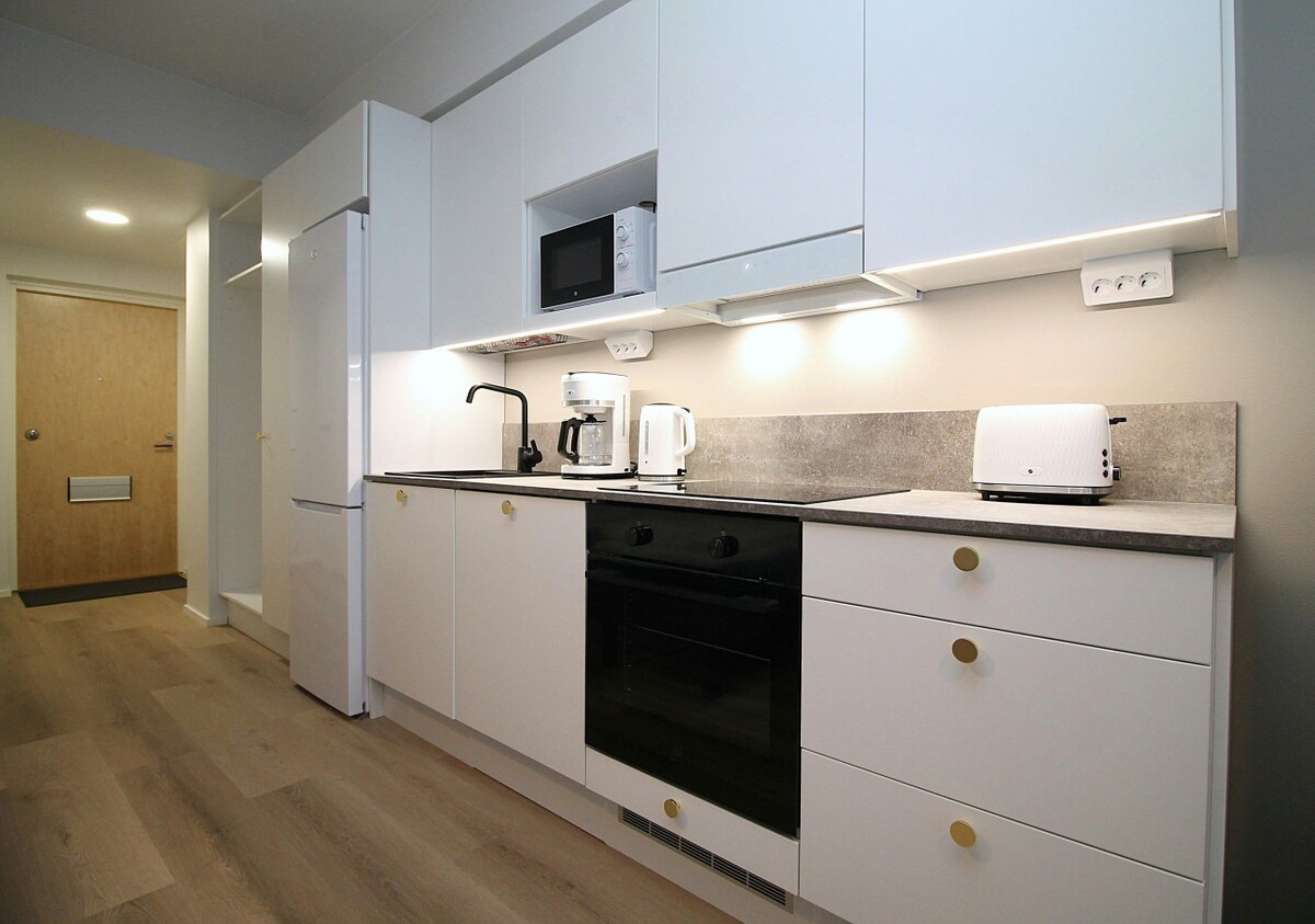 Studio moderne à Pitkämäki, Turku, idéal pour 2 personnes. Il dispose d'une cuisine entièrement équipée, d'un mobilier confortable et d'un parking en option. Profitez des parcs, des cafés et d'un accès facile aux transports en commun à proximité. Parfait pour les séjours longue durée.