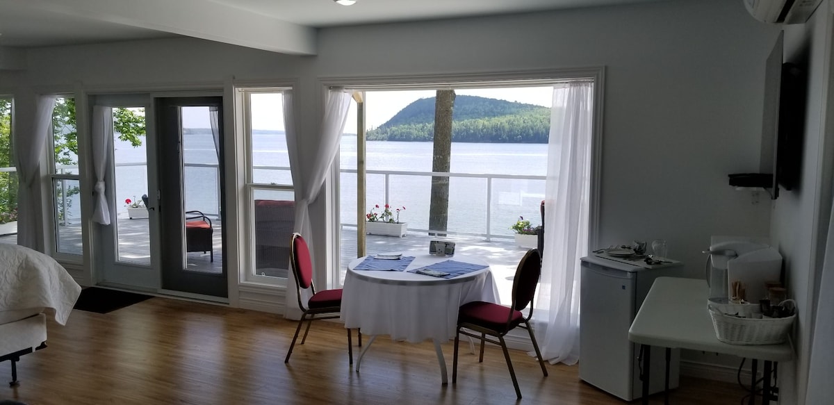 Joli appartement côtier sur la pittoresque baie de Tidal Oak. Asseyez-vous et détendez-vous sur des chaises longues et profitez de la vue, regardez les changements de marée incroyables, marchez sur le fond de l'océan, explorez la plage et faites du kayak ! Bel espace avec salon/salle à manger/cuisine ouverte. Chambre principale avec lit Queen Size et une petite deuxième chambre avec 2 lits jumeaux ! Tous les nouveaux matelas en mousse à mémoire de forme. Comprend l'utilisation de la plage, des canoës (2), des kayaks (4), du barbecue, du foyer avec bois, des chaises longues, de la pergola avec jacuzzi (disponible du 1er mai au 1er novembre). Café/thé Espérant une piscine le 26 juillet