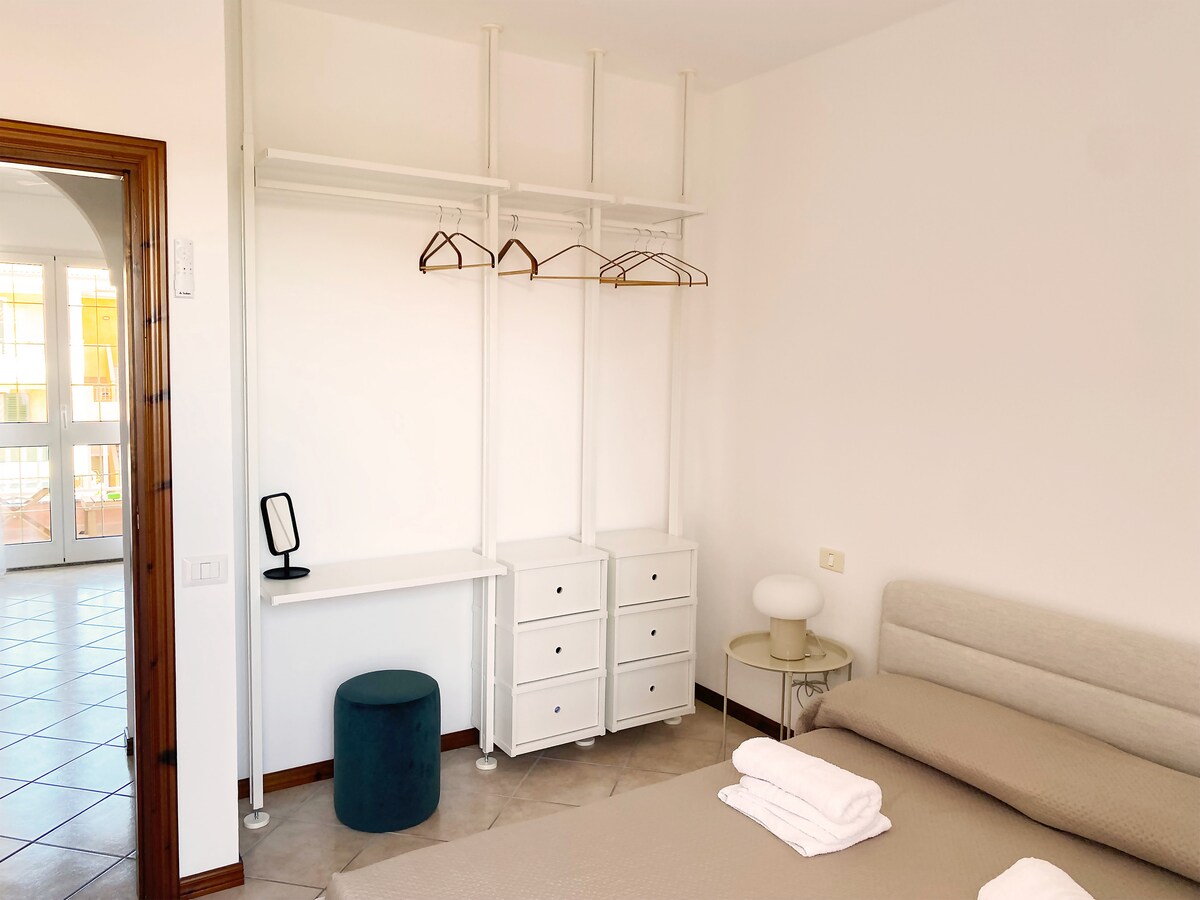 Splendido appartamento finemente arredato, a pochi passi dalla spiaggia del paese. Situato al primo piano, è separato da due stanze indipendenti con corridoio in comune. Soggiorno, cucina e veranda, tutti con vista mare. Salendo una comoda scala a chiocciola, si accede alla camera matrimoniale con bagno e un ampio terrazzo con vista mozzafiato. Tutti gli ambienti sono dotati di aria condizionata e wi-fi. Bar, ristoranti, gelaterie, minimarket, farmacia si trovano nelle immediate vicinanze.