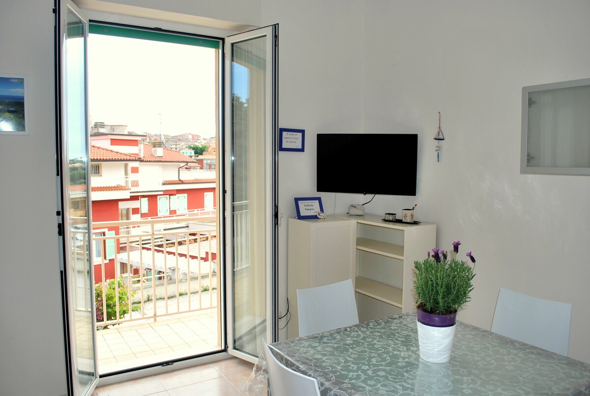 Appartement au premier étage dans un immeuble récemment rénové, très central, à quelques mètres de la place principale, à proximité de toutes commodités, commerces, bars et restaurants. À quelques pas des sentiers de la mer et à proximité de l’arrêt de bus pour les plages. Grand salon avec canapés, TV, pocket Wi-Fi, canapé-lit et balcon, cuisine équipée avec table à manger. Chambre principale avec lit double, chambre avec deux lits simples et bureau, salle de bain avec baignoire et douche. Parking gratuit.