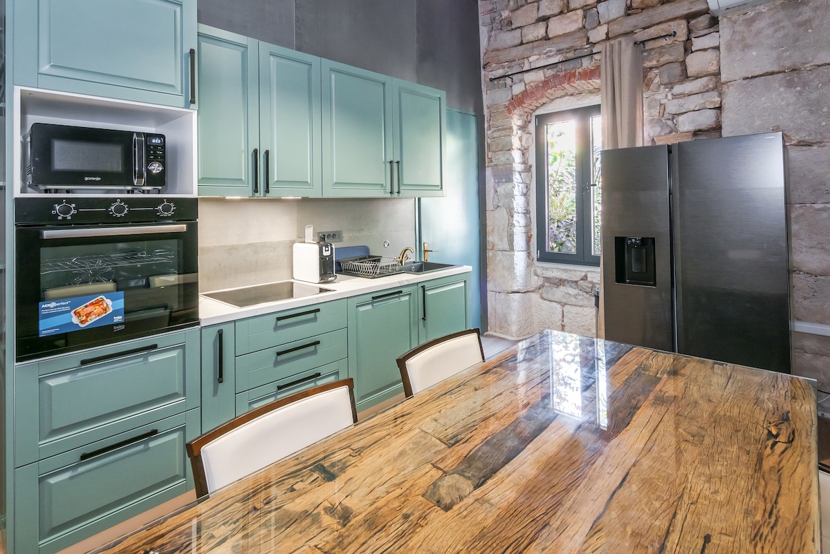 « GREEN DREAM » propose un hébergement pour 12 personnes. Deux appartements luxueux, modernes et entièrement équipés avec 5 chambres, offrant un accès à la terrasse extérieure avec sa propre cuisine vintage, des toilettes, une petite salle de sport et un espace pour s'amuser avec un billard. Le quartier est très calme, sans bruit de voiture. De la terrasse, il y a un accès à la piscine et au beau grand jardin avec un belvédère pittoresque couvert de jasmin parfumé. La propriété est à seulement 4 km du centre de Split et du palais de Dioclétien !