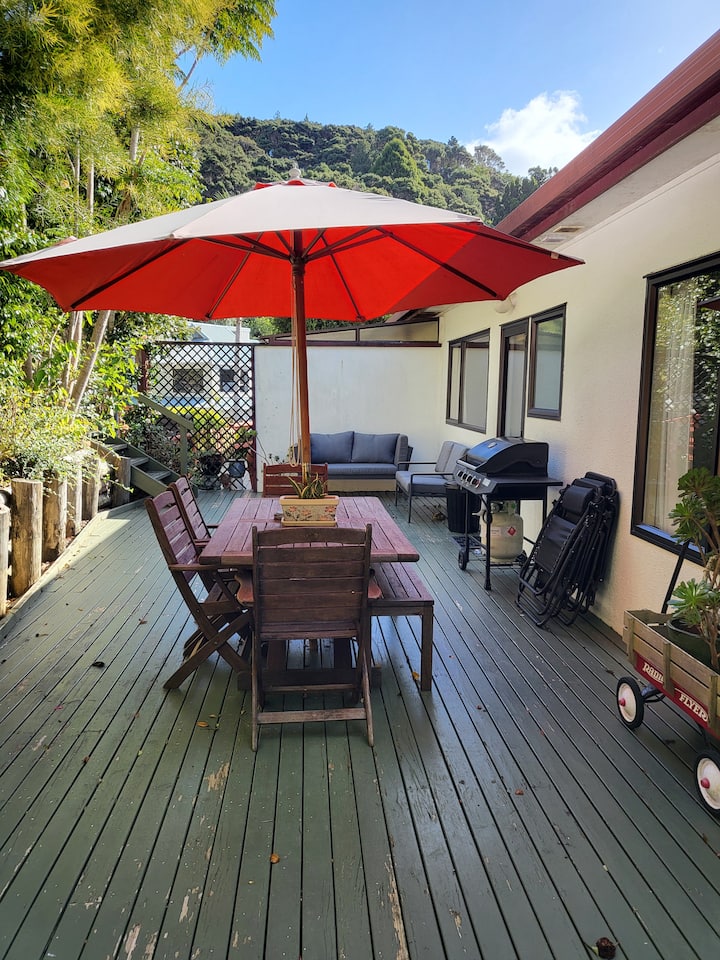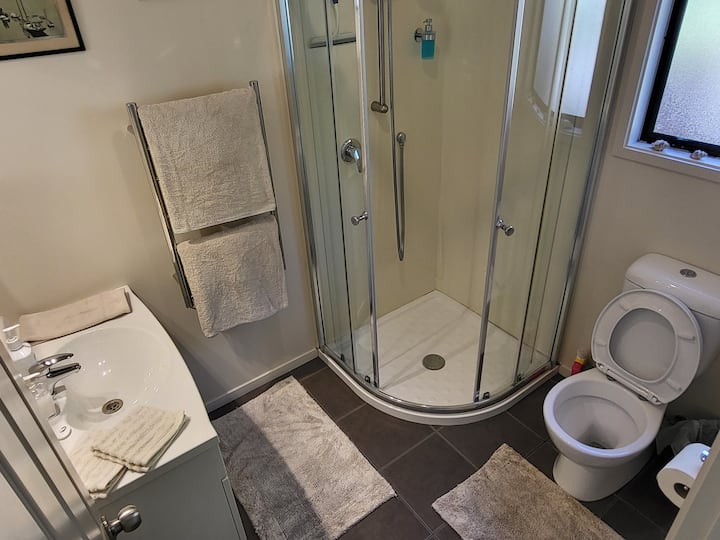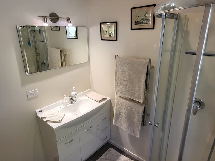 Wayne et Keith sont ravis de vous accueillir dans un espace privé de notre logement. Vous pouvez garer votre voiture et se trouve à deux pas de la plage, de la ville et des ferries.