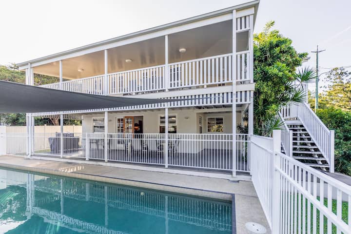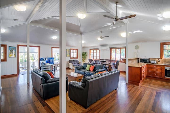 Cette grande maison de vacances de 2 étages a tout pour plaire. Assez grand pour que 2 familles ou plus puissent passer des vacances ensemble et partager le coût (peut accueillir jusqu'à 14 personnes). Sinon, beaucoup d'espace pour que les petits groupes puissent s'étendre et profiter de 5 chambres, 3 salles de bain et 2 cuisines. Il y a une piscine de bonne taille ou la plage locale est à quelques pas. Si vous n'avez pas envie de cuisiner, descendez au bar local pour un steak et quelques bières ou tout ce que vous voulez. Profitez de l'île Magnétique et détendez-vous.
