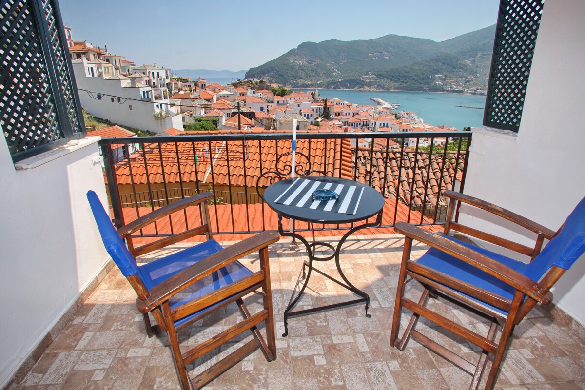 Le Penthouse est au dernier étage et dispose d'une chambre avec une salle de bain et un grand salon avec un canapé lit. Vous y trouverez également une très grande véranda, qui offre une vue magnifique sur la mer, où vous peut profiter d'un verre ou d'un dîner sous les étoiles de la mer Égée. Le Penthouse peut accueillir jusqu'à trois personnes.