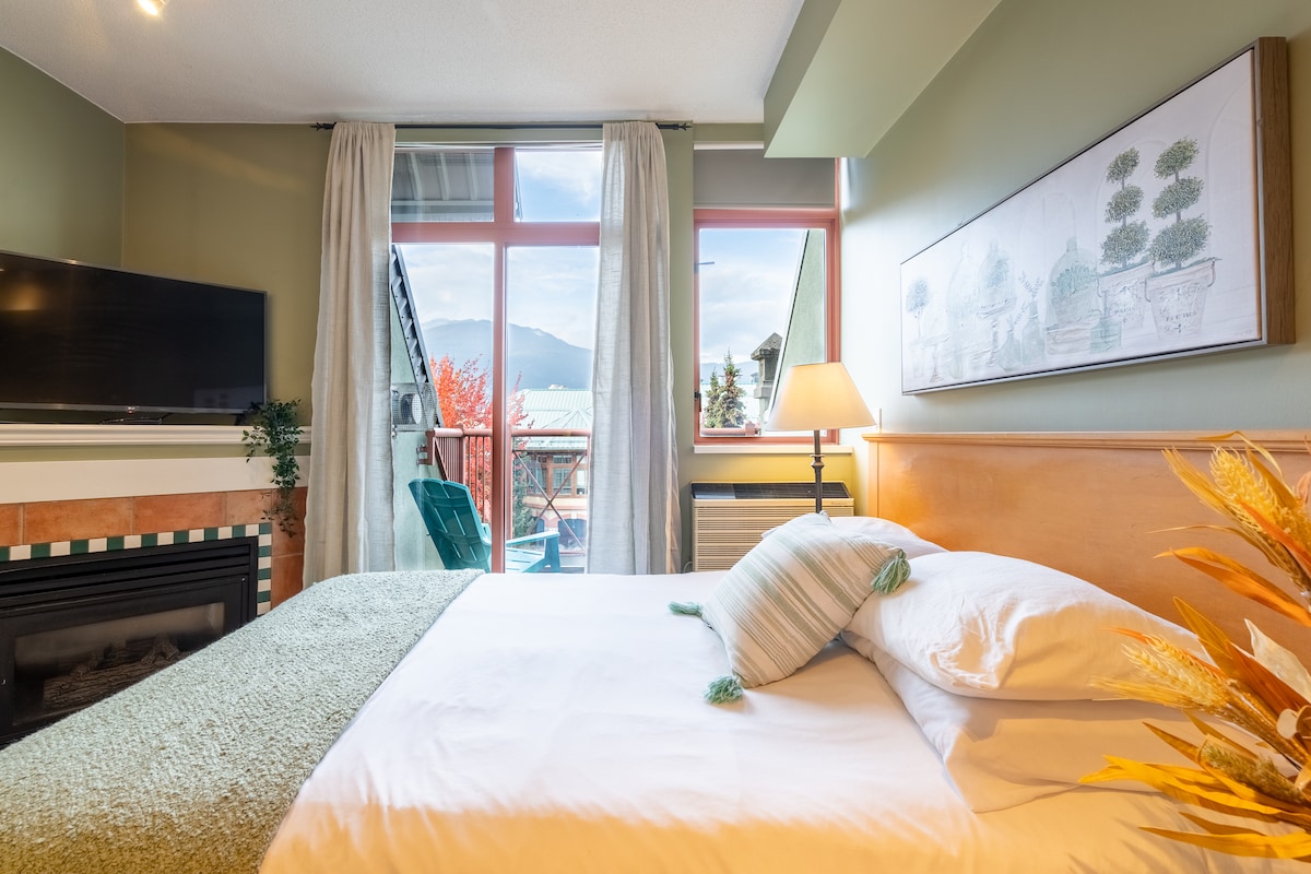Bienvenue à l'Alpenglow ! Niché au cœur du village de Whistler, notre logement n'est qu'à quelques pas des bars, restaurants et boutiques. Vous aurez accès au jacuzzi, à la piscine et au sauna, ainsi qu'à un parking payant sécurisé. Le patio offre une vue imprenable sur les montagnes. Le studio dispose d'une kitchenette entièrement équipée, d'un accès gratuit à Internet et à Chromecast. À 7 minutes à pied du pied des montagnes de Whistler et de Blackcomb