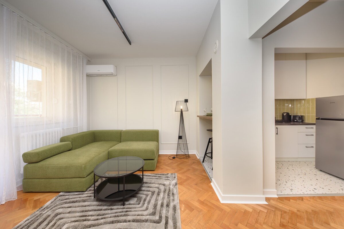 Cet appartement spacieux d'une chambre récemment rénové est situé au 2e étage avec une vue sur le parc du palais de Banovina, unique sur le plan architectural et historique. Il est à seulement 7 minutes à pied de : - l'église du Nom de Marie ; - la rue principale de la ville et la zone piétonne regorgeant de restaurants et de bars ; - le quai du Danube. Il est également à 1,3 km (0,8 miles) de la célèbre forteresse de Petrovaradin, à 6 min en voiture de la plage de la ville et à 30 min en voiture du magnifique parc national de Fruška Gora.