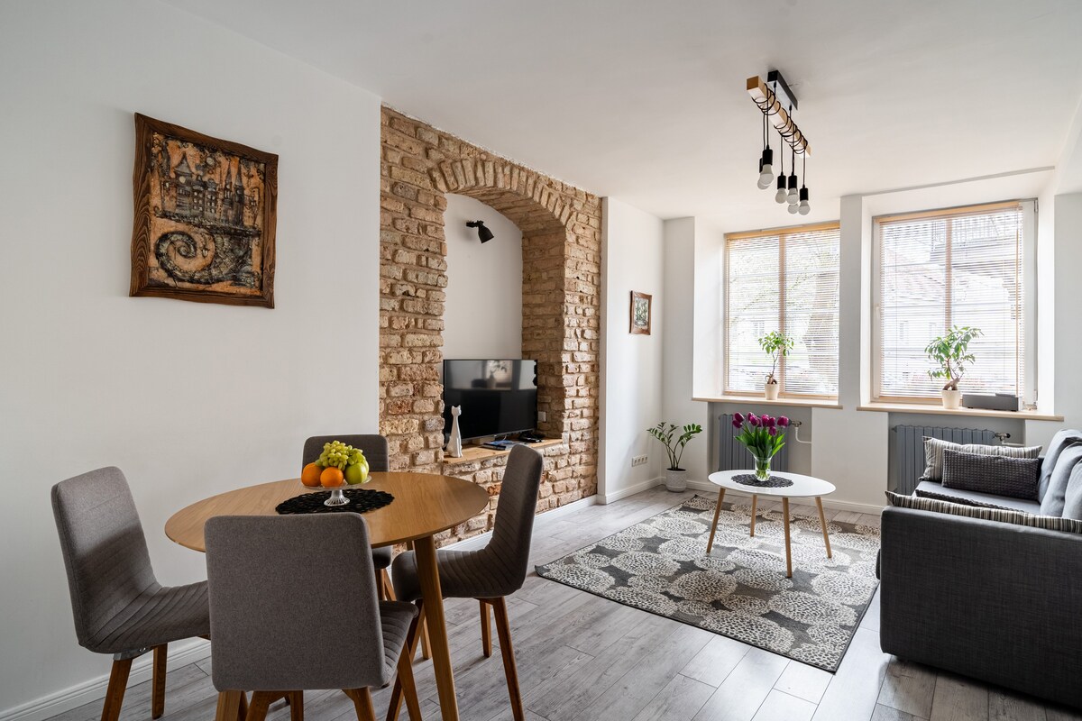 Appartement moderne et calme de 2 chambres dans la vieille ville de Vilnius. Contrairement aux locations typiques, c'est notre maison familiale, qui est chaleureuse, personnelle et soigneusement entretenue. Il offre une occasion unique de séjourner au cœur du centre-ville animé tout en profitant du confort et du caractère d'un espace habité. Vous serez à quelques pas des cafés, restaurants, boutiques, musées et autres attractions. Il y a des places de stationnement à l'intérieur de la cour.