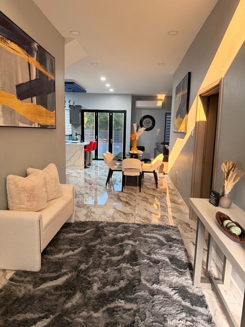 Détendez-vous avec toute la famille dans cette retraite paisible et luxueuse au cœur de Portmore. Cette maison spacieuse de 3 chambres et 3 salles de bain allie parfaitement confort, style et tranquillité. Profitez des repas dans la cuisine moderne, détendez-vous dans le salon aéré ou détendez-vous sur le patio. Les voyageurs ont également accès au club-house et aux équipements de loisirs, notamment une piscine, une salle de sport, un court de tennis et une aire de jeux pour enfants, ce qui en fait l'endroit idéal pour les familles et les groupes pour créer des souvenirs durables.