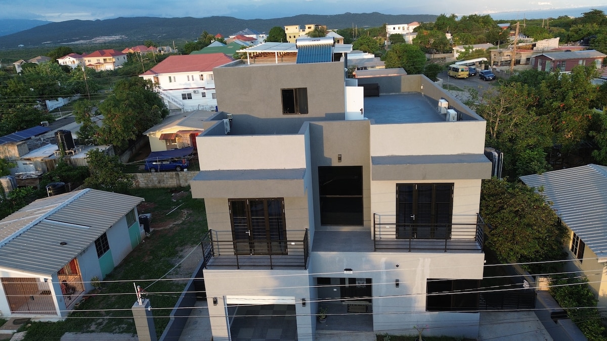 Un appartement serein et spacieux de 2 chambres et 2 salles de bain niché dans un quartier calme. Détendez-vous dans une maison climatisée et conviviale, idéale pour les couples, les familles ou les groupes d'amis en quête d'une escapade relaxante. À 5 minutes de Starbucks, Pricesmart et des principaux centres commerciaux. À 10 minutes de la plage de Hellshire.
