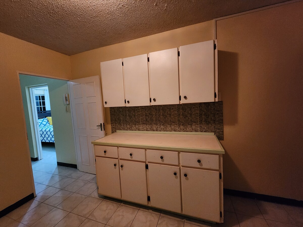 Fabuleuse suite studio à Caribbean Estates, une communauté fermée active à Portmore. Sécurité 24h/24, parc, piste de jogging, terrain de football, terrain de football, terrains de tennis. Situé au 2ème étage. Climatisation. WIFI. Télévision par câble. Salle de bain lumineuse et aérée Cuisine complète. Appareils en acier inoxydable. Comptoirs en granit Sol carrelé en porcelaine Balcon carrelé pavé À proximité de Hellshire Beach À 10 à 15 minutes de Down Town Kingston et Half-Way-Tree Excellente escapade pour un couple qui cherche à se détendre ou professionnel