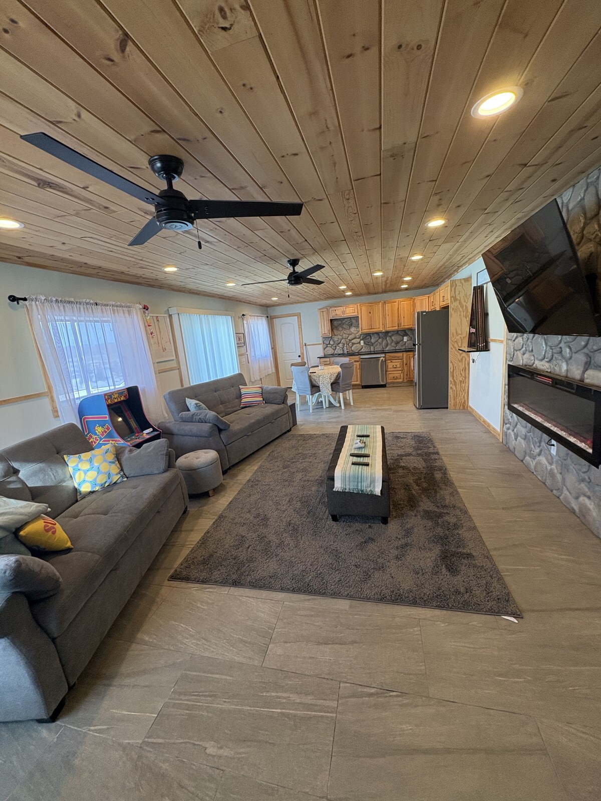 Emplacement incroyable ! Capacité d'accueil de 4 personnes, excellente qualité ! Des draps à la cuisine en passant par les meubles ! Grande accessibilité à pied aux restaurants, beaux parcs fluviaux, épiceries et magasins, tous à quelques pâtés de maisons. À seulement 4 minutes de l'hôpital St Cloud. Que vous profitiez de la télévision intelligente 4K de 65", connectée au Wi-Fi, que vous cuisiniez dans notre belle cuisine bien approvisionnée ou que vous dormiez simplement, vous trouverez confort et qualité. Patio extérieur avec foyer, table et barbecue au charbon de bois. Parking gratuit de 10' x 55' pouvant accueillir un camion et une remorque.