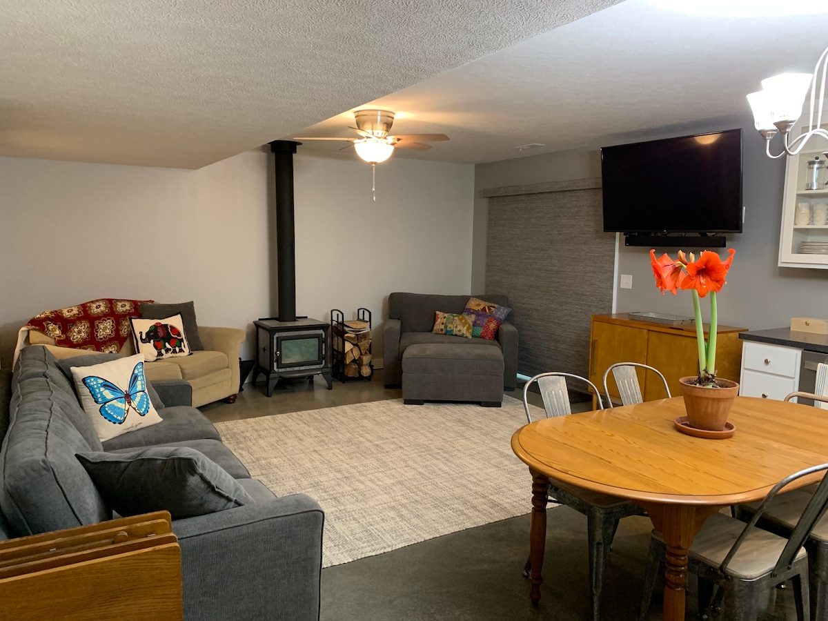 Approx. 10 miles/25 min. from University of Notre Dame & Amish country, this rural apartment is our finished basement that we reside over. With own private walk-out entrance from back of the house, unit includes 2 BR's (one very small), full bath (shower, no tub), kitchen/family room & laundry room. Once outside, you're on 60 acres of rolling pasture + 17 acres of forest. There are cattle, sheep, chickens & dogs (+ a couple of barn cats & seasonal pigs.). Plenty of space for hiking & exploring.