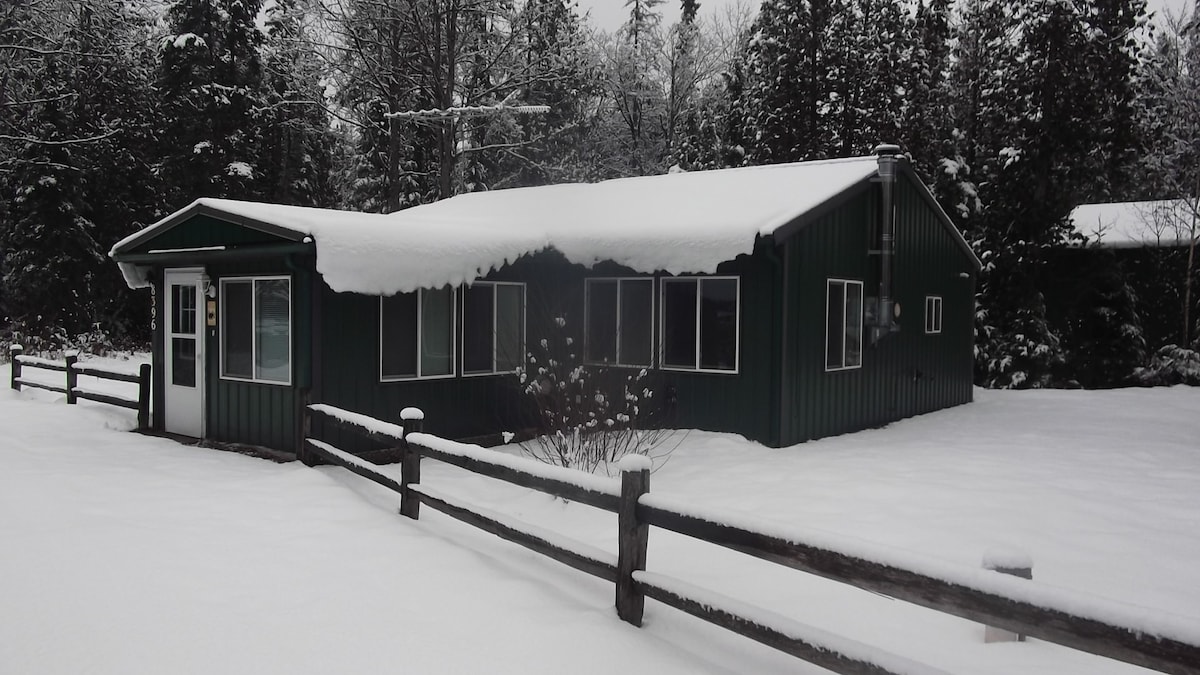 Cette escapade en chalet propre, calme et confortable est nichée entre des forêts de pins et est proche d'un assortiment infini d'activités de plein air toute l'année. Sortez et profitez du calme de la campagne. La rivière St. Marys et le lac Huron sont proches pour les activités nautiques ou les plages peu fréquentées. Évadez-vous en toute sécurité de votre vie chargée et détendez-vous ! Situé sur une route ORV A de l'État du Michigan ; et en face d'une église catholique historique. Les touristes tombstone apprécieront le cimetière local juste en haut de la route.