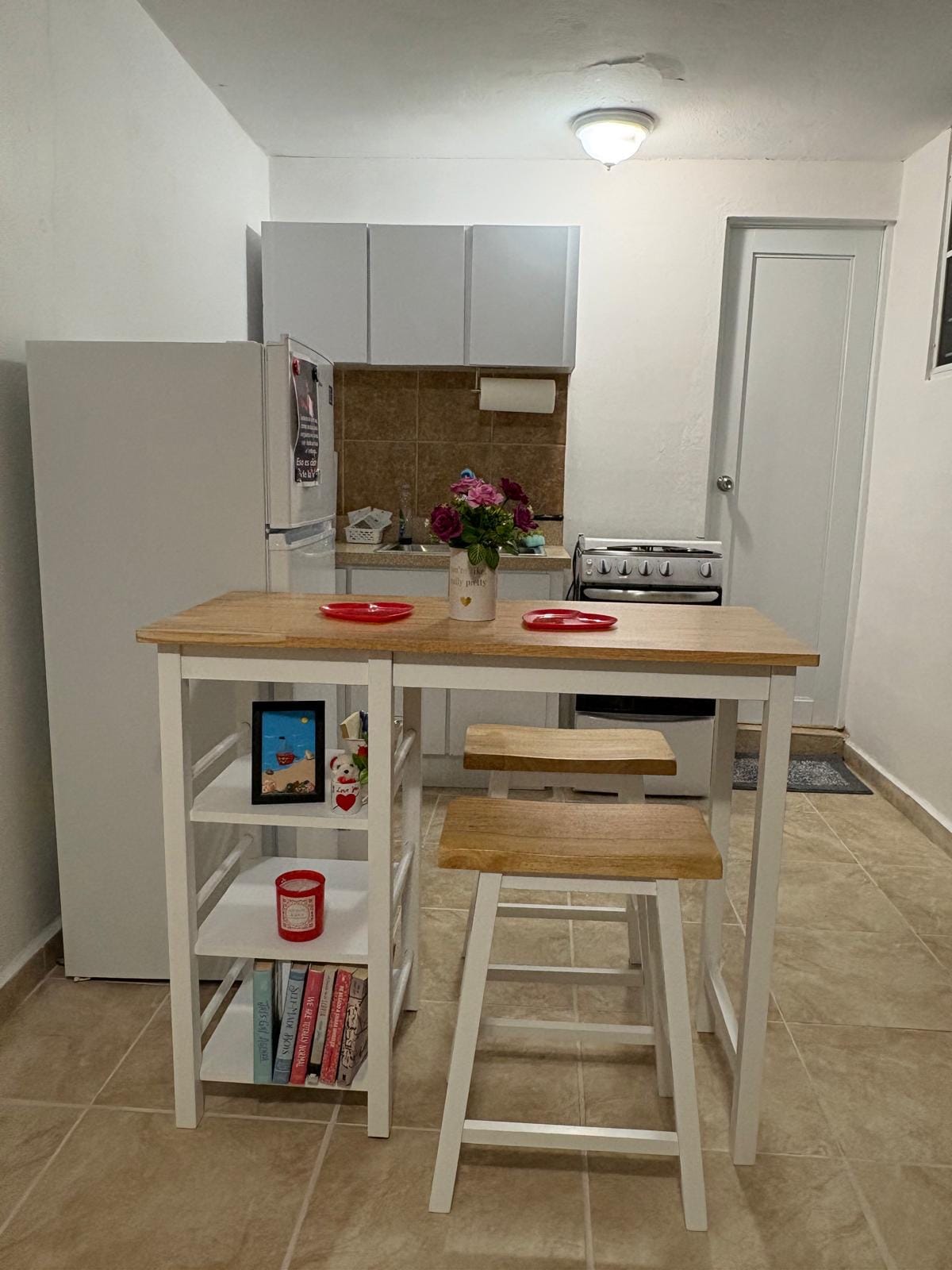 Cozy fully furnished private studio with A/C, bathroom, functional kitchen, and fast WiFi. Located in a multifamily property with a private entrance. Parking is available right in front of the property. The main house is occupied by my father, who is friendly and available if you need anything. Just 15 minutes from top tourist attractions Isla Verde. Perfect for relaxing after a day of exploring. 🚫 No pets allowed.