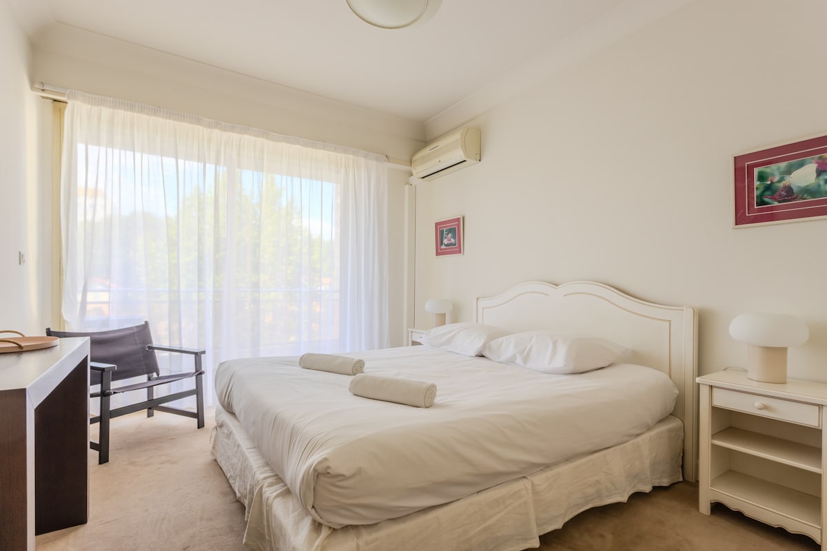 Appartement 3 pièces moderne, 62 mètres carrés.. Climatisation. 2 chambres avec 1 lit 160 et un lit en 140 (possibilité de rajouter 1 matelas en 90) Prestations soignées. Exposé plein sud, lumineux et traversant Aéroport proche. Plages à 15 minutes à pieds, commodités au pied de l’immeuble. Se situe à 35 minutes de Monaco en voiture suivant l’heure de votre départ. Se situe à 35 minutes de Monaco en train : 16 euros aller/retour. Place de parking dans résidence à côté ……Netflix….