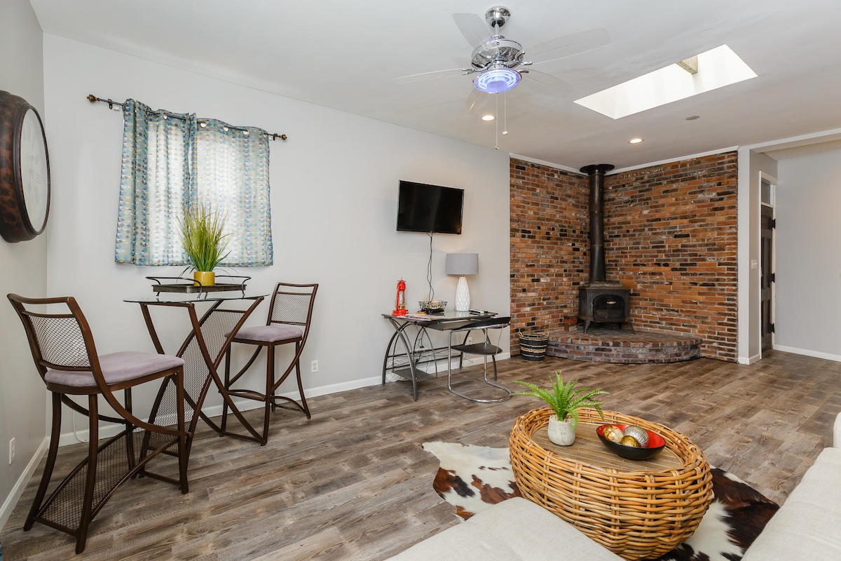Ce charmant chalet lumineux ressemble à un refuge privé, mais il est proche de tout ce que St. Louis a à offrir. Niché entre les arbres dans un quartier calme de Maplewood, il se trouve à 15 minutes à pied du MetroLink et à 10 minutes en voiture de l'Université de Washington, de l'Université Webster, de l'Université Fontbonne, de Forest Park et de Clayton. Les voyageurs d'affaires et les familles apprécieront le lave-linge/sèche-linge, le WIFI rapide et la télévision par câble.