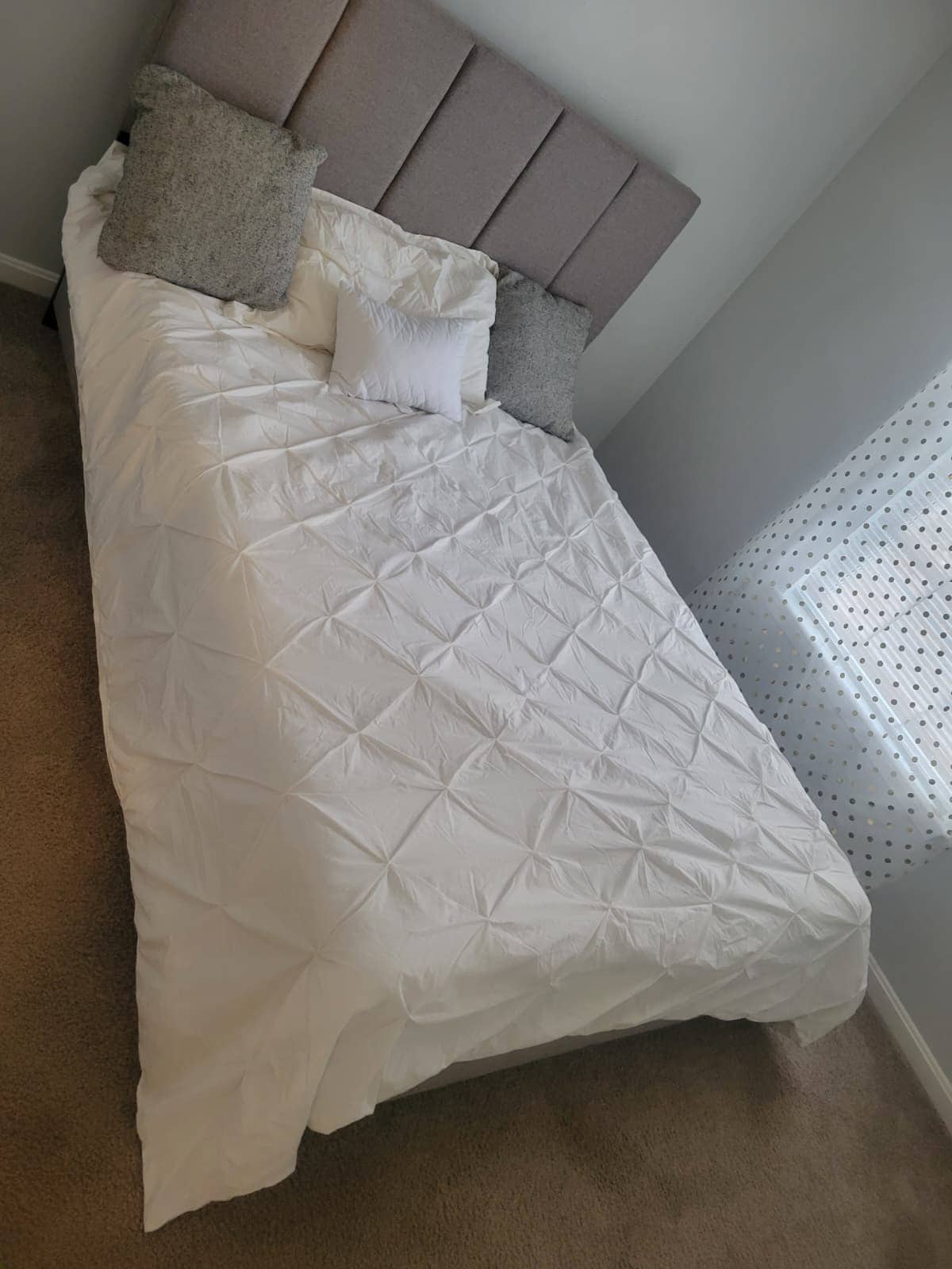 Welcome home to this peaceful 3-bedroom, end-unit townhouse with a large primary suite. Includes spacious, fully functional eat-in kitchen leading outside to a private yard with decks on two levels. The king-bedroom suite has 9’ ceilings and a private two-person bathtub. Blowup mattresses available. Nearby: Quantico Fredericksburg, VA Potomac Point Winery Mary Washington University Potomac Mills Mall (Outlet) 45 minutes from Richmond, VA or Washington, DC