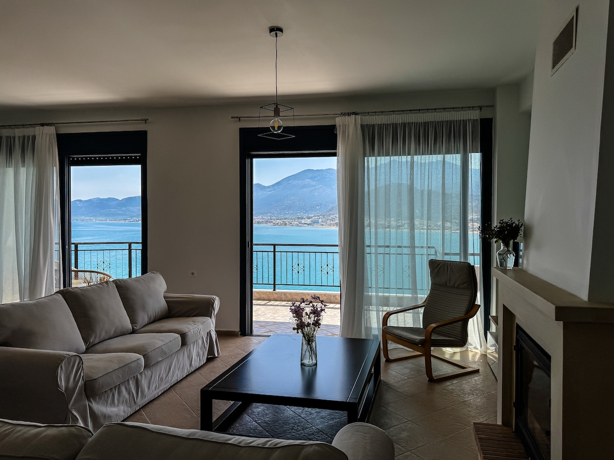 Bienvenue ! C'est un appartement magnifique avec deux vérandas et une vue imprenable sur la mer, les montagnes et les environs. Vous pouvez nager et vous détendre sur la plage juste devant la propriété. Le jardin verdoyant dispose de plusieurs arbres, herbes et fleurs. C'est un bel appartement lumineux et fonctionnel, entièrement équipé pour 2 à 4 personnes. Nos voyageurs seront plongés dans le bleu infini et l'hospitalité chaleureuse, ainsi que plusieurs activités disponibles dans la région.
