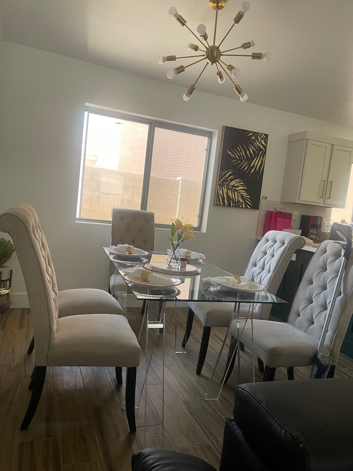Évadez-vous dans cet appartement bien aménagé dans une maison au calme au bord de l'eau à The Lakes à Maricopa. Vous apprécierez cet espace haut de gamme avec des parquets en céramique et un plan d'étage bien conçu pour maximiser l'espace. La suite privée dispose d'un lit à baldaquin queen size, d'une cuisine/espace LR, d'un garde-manger avec porte coulissante de la grange, d'une salle de bain privée, d'un lave-linge/sèche-linge européen et de 2 télévisions Roku intelligentes. Les voyageurs peuvent se garer dans l'allée et accéder au logement par une entrée de code sur la porte d'entrée que l'hôte fournira.