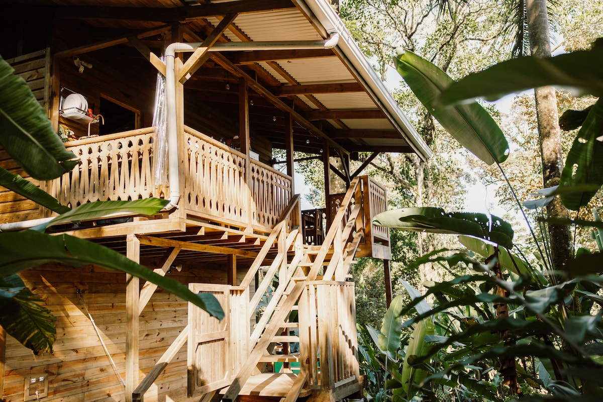Les amateurs de paradis sont invités à profiter de leurs vacances ou à travailler à distance et confortablement à seulement 100 m de kilomètres de plage immaculée et de forêt tropicale. Maison de vacances sur mesure d'une chambre à coucher en bois franc local avec lits king size et doubles. Les caractéristiques artistiques spéciales comprennent une douche à effet pluie en mosaïque, une cuisine entièrement équipée, un salon confortable et une grande terrasse. Passez quelques nuits ou un séjour prolongé tout en profitant des sons des vagues de l'océan mélangés aux singes, aux oiseaux et à la faune dans les forêts tropicales environnantes.