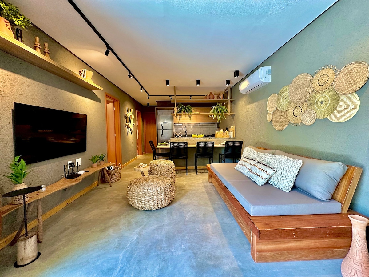 Bienvenue à Mandi – Confort et style à 390 m de la plage de Pajuçara ! Profitez d'un séjour moderne et confortable au cœur de Pajuçara, l'une des plages les plus charmantes de Maceió ! Situé au 8ème étage, notre appartement chambre et salon a été conçu pour offrir praticité et bien-être, avec une vue urbaine et un environnement climatisé.