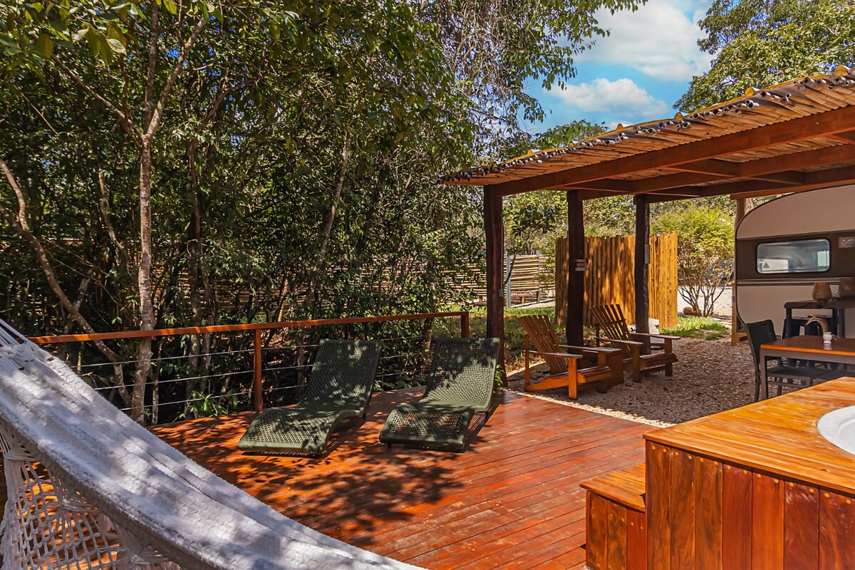 VILA PIRILAMPO est arrivé à Pirenópolis - Goiás avec la proposition d'une expérience d'hébergement en remorque au milieu de la nature avec confort et intimité. Nous sommes situés dans une structure fermée, sécurisée et complète pour vivre une expérience inoubliable. À seulement 3 km du centre historique, nos clients pourront profiter d'un contact direct avec la forêt indigène, en plus d'avoir accès à un bain rafraîchissant dans la rivière des âmes, qui borde la propriété – Une véritable immersion dans la nature !