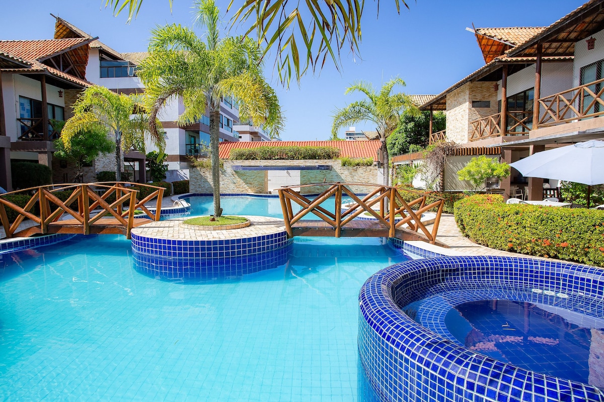 Notre appartement est situé dans le Condomínio Paraíso do Atlântico Residence Club qui est une référence dans tout João Pessoa en raison de la grande organisation et de l'infrastructure du complexe hôtelier ! Condominium pieds dans le sable avec un haut niveau de qualité, beaux jardins, espaces de vie et espaces de loisirs. Il est situé sur le sable de la plage de Ponta de Campina à Cabedelo, une ville voisine de João Pessoa. La plage de Ponta de Campina est une véritable Caraïbe brésilienne !