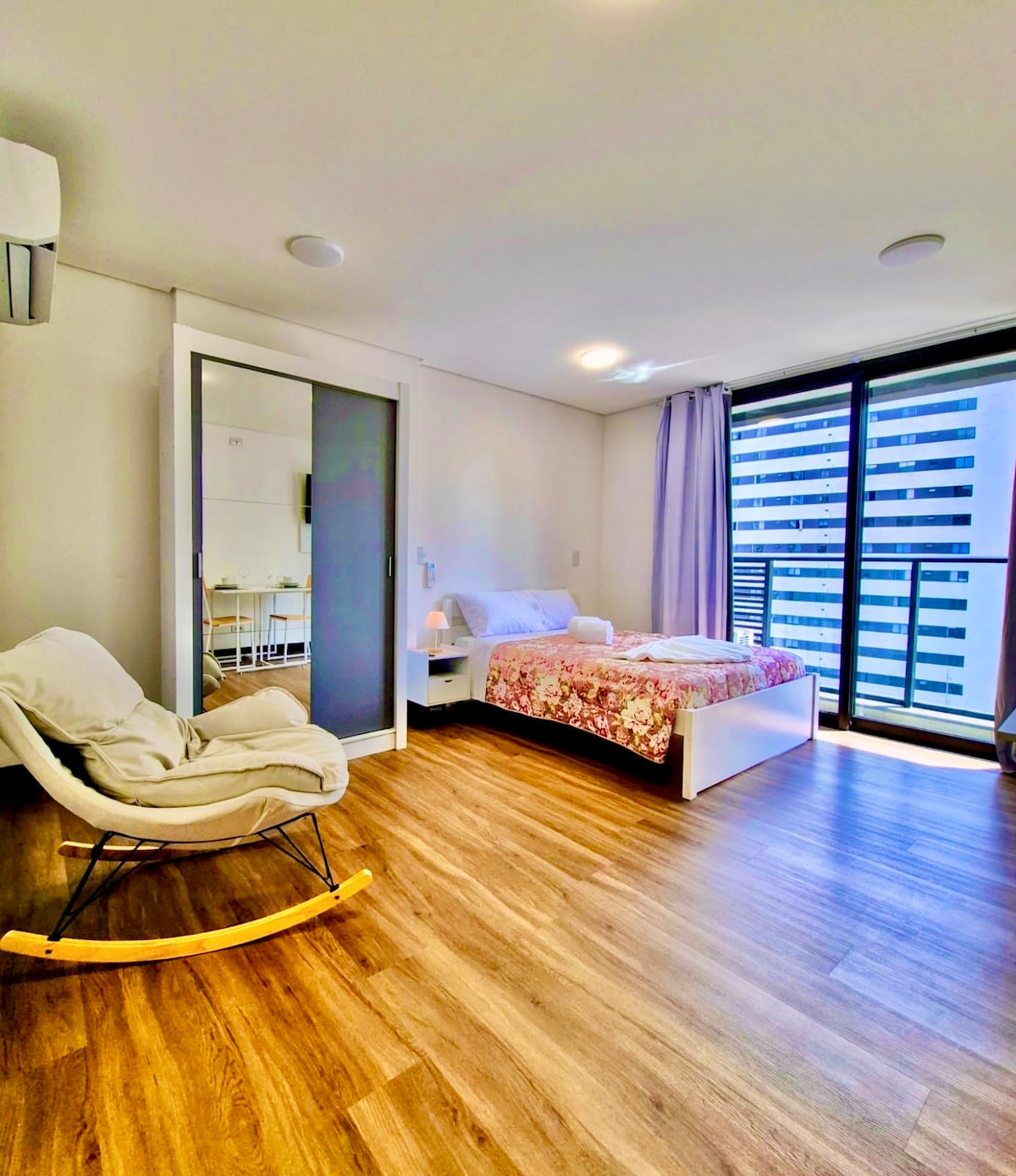 Studio complet pour (2) deux personnes, avec une place de parking, situé à (1) un pâté de maisons de PUC. Avec climatisation, Wi-Fi à grande vitesse, Smart TV, lit double, cuisine équipée, linge de lit et de bain, shampoing, savon, bureau, sèche-cheveux, fer à repasser, à côté de Shopping Estação, Carrefour et autres marchés, boulangeries et restaurants. Il est super confortable avec toute la sécurité, avec arrivée/départ autonome.
