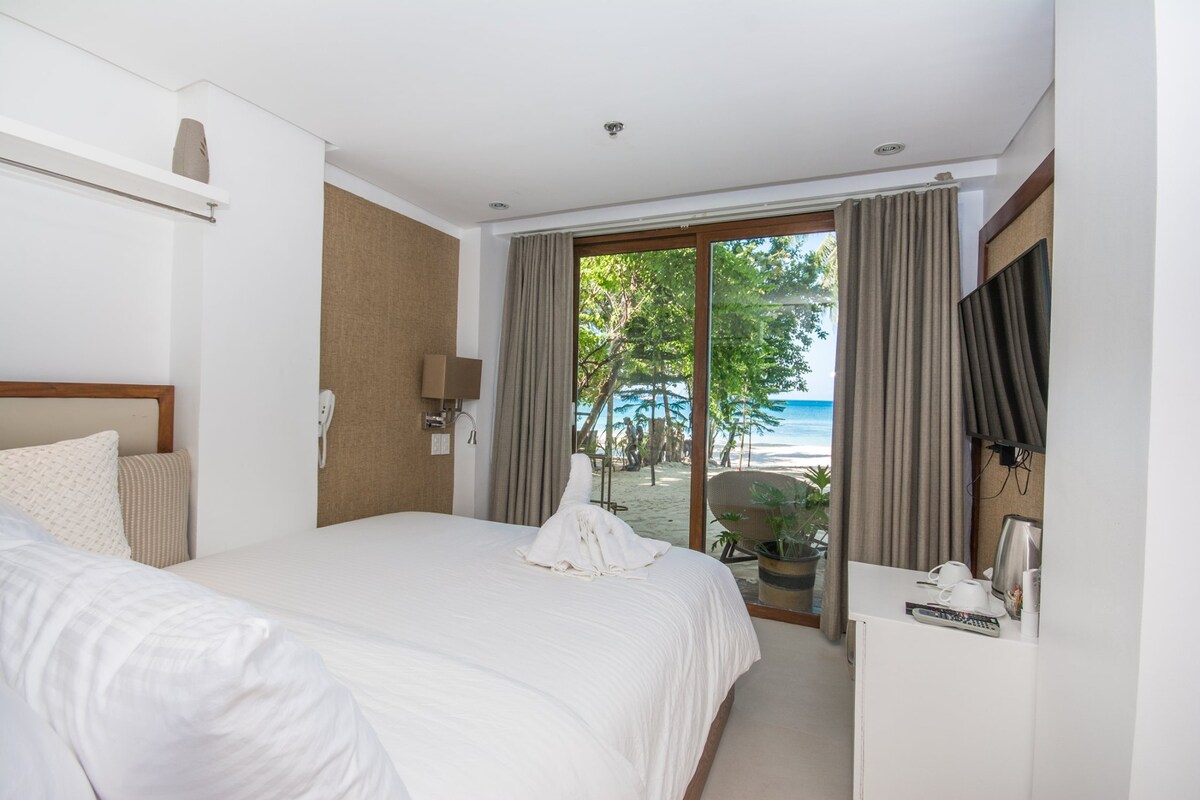 Vous apprécierez cet endroit pour son excellent emplacement en bord de mer, littéralement à deux pas de la plage. Il vous offre également la commodité d'être à proximité de petits stands de shopping ouverts et aussi de la gare de Boracay 2 où se déroulent la majeure partie des activités de jour et de vie nocturne. Propriété en bord de mer avec du sable blanc de renommée mondiale ! Mon logement est parfait pour les couples, les aventuriers en solo, les voyageurs d'affaires et les familles (vous pouvez amener jusqu'à 2 enfants, 11 ans et moins seulement).