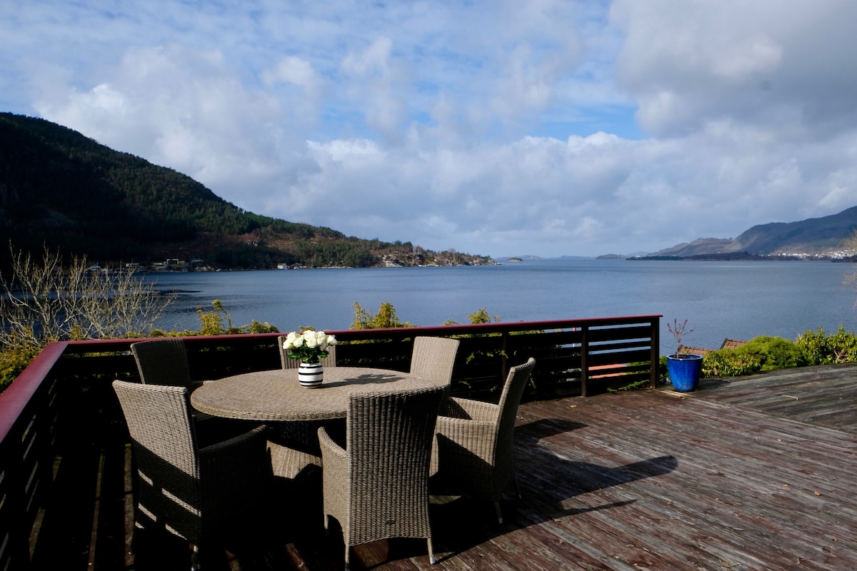 Endroit magique au bord du lac avec un jardin de 8000 m2 et une plage/rivage de 120 m. Parfait pour se détendre, naviguer et pêcher. Au bord du lac, il y a un pavillon avec une vue remarquable où vous pourrez profiter du coucher de soleil. Un bateau et un canoë sont disponibles gratuitement. C'est un endroit très privé et calme, mais toujours parfaitement situé à Ryfylke avec toutes ses randonnées à couper le souffle à proximité. En 2020, la salle de bain et le hall ont été entièrement rénovés, et un câble à fibre optique a été installé avec une connexion wifi rapide.