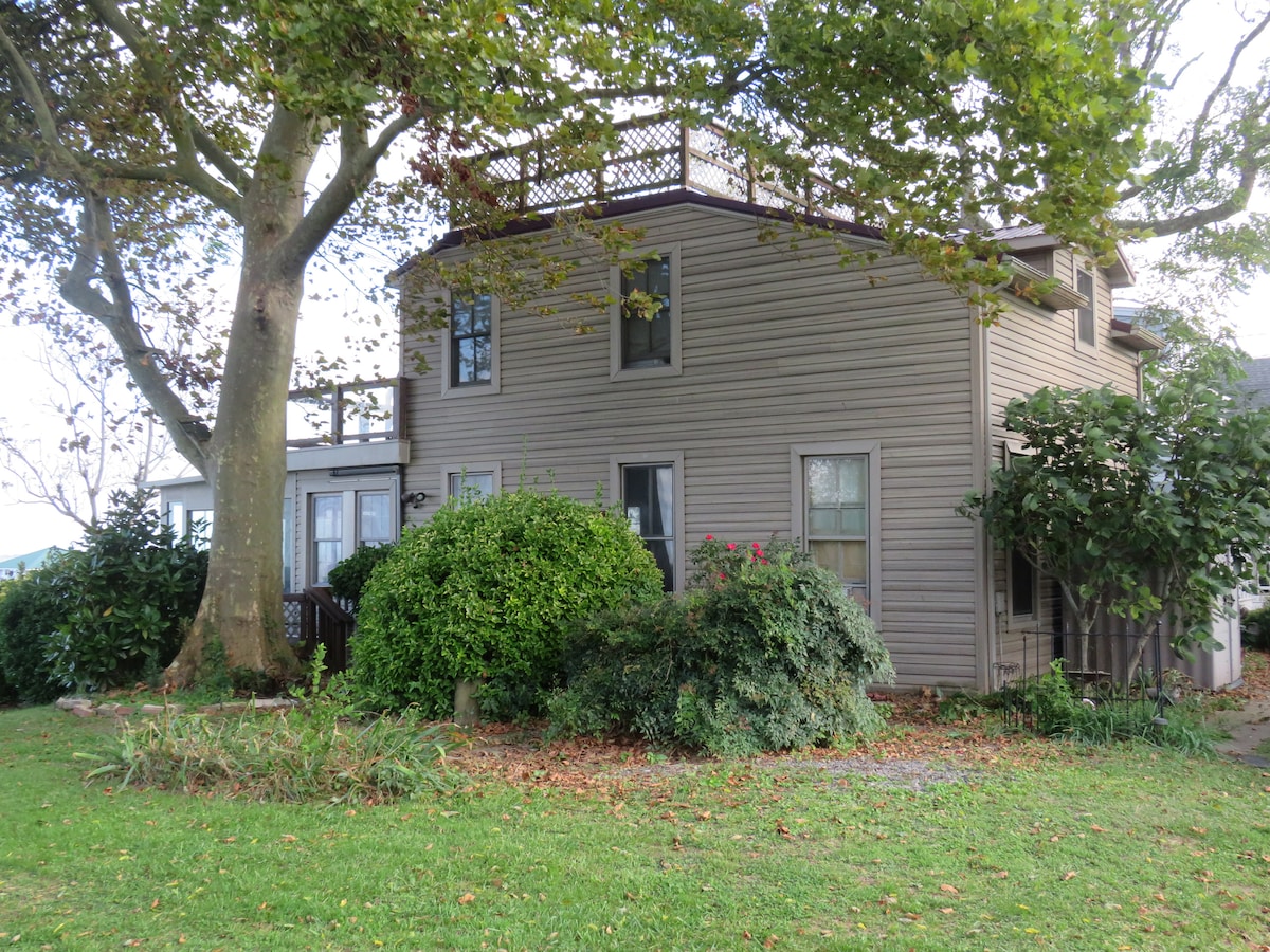 Sur le front de mer emblématique de Public Landing de Chincoteague Bay - vue à 180 degrés sur l'horizon de l'île d'Assateague d'Ocean City à Chincoteague. Parfait pour les levers de soleil, les couchers de soleil, l'observation du ciel, l'observation des oiseaux et les sports nautiques. Peut accueillir 6 personnes, deux chambres, deux salles de bain, un quai privé, des terrasses surélevées et une véranda. À 30 pieds de l'eau. Public Landing offre de superbes possibilités de baignade, de navigation de plaisance, de pêche et de pêche au crabe. La rampe d'accès au bateau de la jetée publique et la plage sont à quelques minutes à pied et il n'y a pas de frais.
