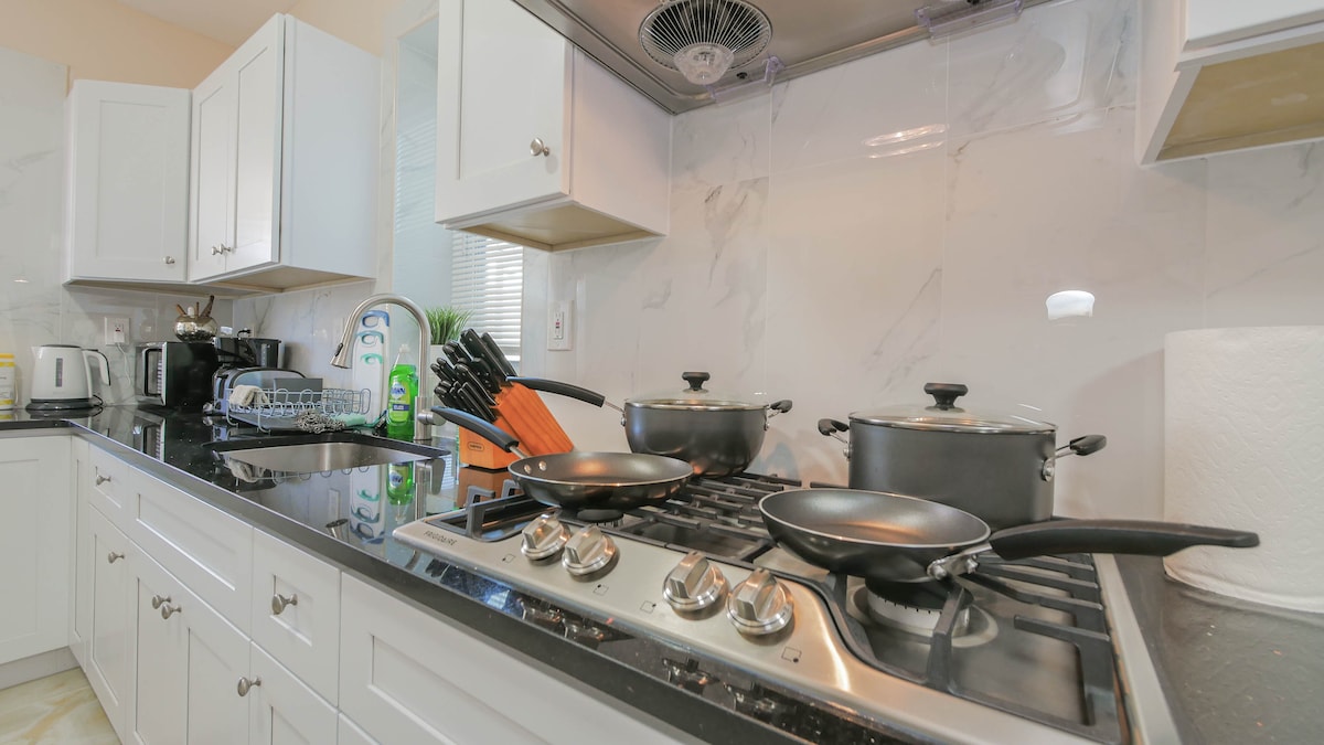 S'étendant sur environ 189 pieds carrés, cet espace confortable mais élégant est idéal pour une vie simplifiée à seulement un pâté de maisons de la plage. La kitchenette dispose d'un plan de travail en granit élégant, d'un mini-réfrigérateur, d'un micro-ondes, d'une plaque de cuisson à induction et d'un ensemble de salle à manger à contre hauteur. La salle de bains dispose d'une douche carrelée personnalisée dans des tons bleu-gris apaisants. Meublé avec un lit queen, une télévision connectée et un bureau, cet appartement est soigneusement aménagé pour votre commodité, avec des serviettes de plage pour votre plaisir.