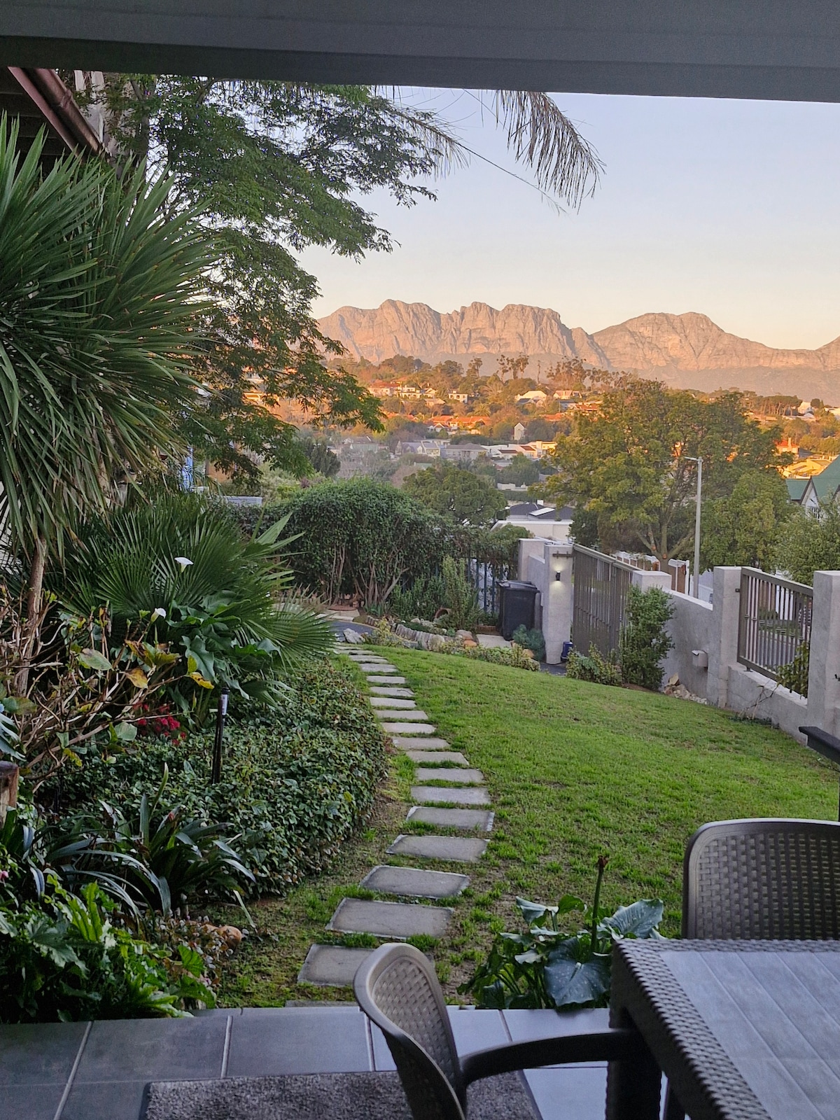 Belle suite de jardin situé dans un jardin paisible, est élégamment décoré avec une baignoire, salle de bains privative et douche. La chambre est entièrement équipée avec un générateur, TV, Wi-Fi, micro-ondes, couverts et vaisselle, thé et café Nespresso, climatisation, chauffage, sèche-cheveux, etc. La chambre mène à son propre jardin privé, où vous pourrez profiter de la vue magnifique sur les montagnes de Franschhoek. Profitez d'une baignade dans la piscine ou d'une partie de tennis ou de promenades dans les vignobles et la roseraie.
