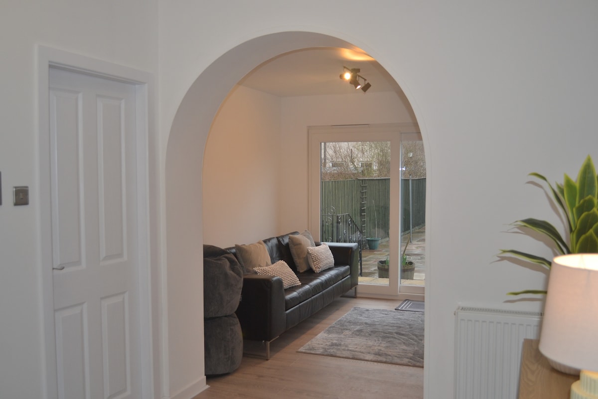 Maison familiale récemment décorée et meublée (jumelée) comprenant une chambre double et une chambre à deux lits. Situé à Stirling sur l'A9, cet excellent emplacement est idéal pour les visiteurs voyageant en voiture ou en transports en commun, avec un accès rapide au centre-ville de Stirling, à la vallée de Forth et au-delà. Cet hébergement indépendant est comme une maison loin de chez vous, un confort moderne avec tout ce dont vous avez besoin. Cuisine : réfrigérateur-congélateur, plaque de cuisson à gaz et four électrique. Draps et serviettes fournis. Wi-Fi Jeux et DVD pour les enfants.